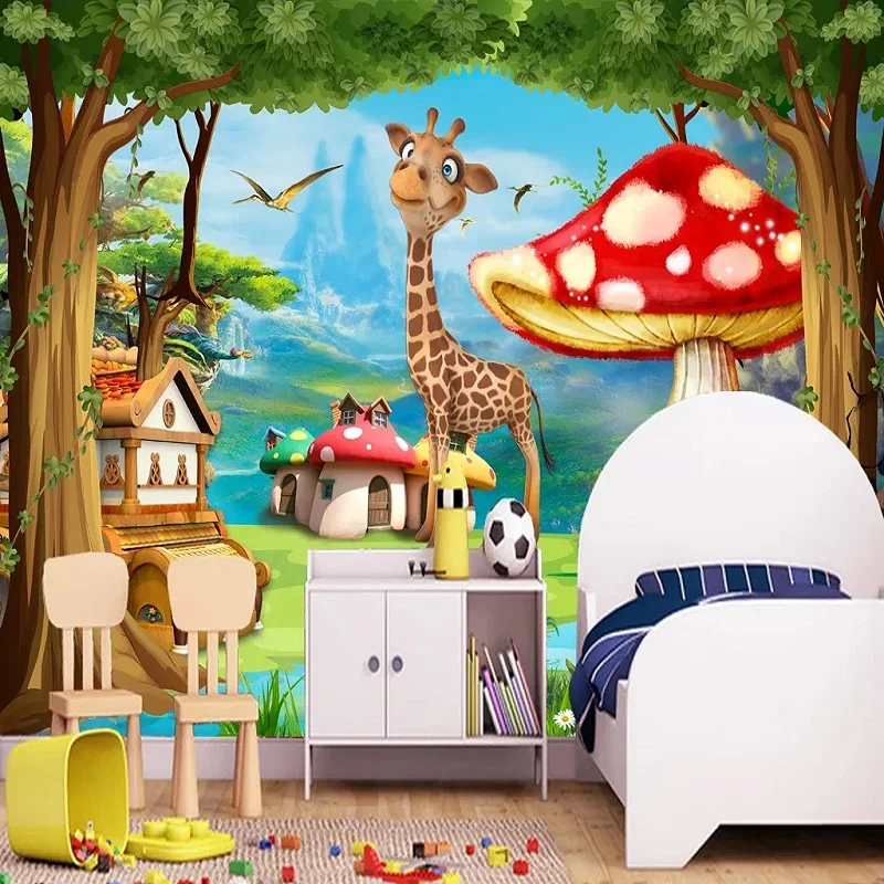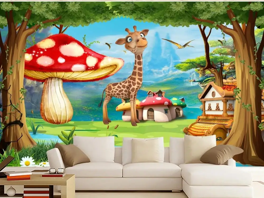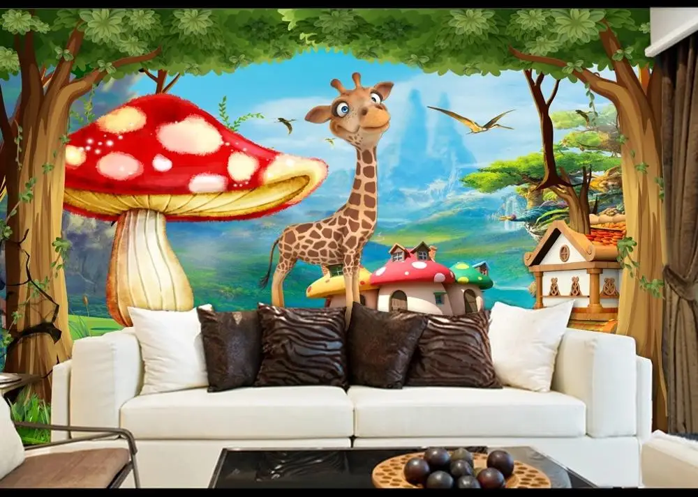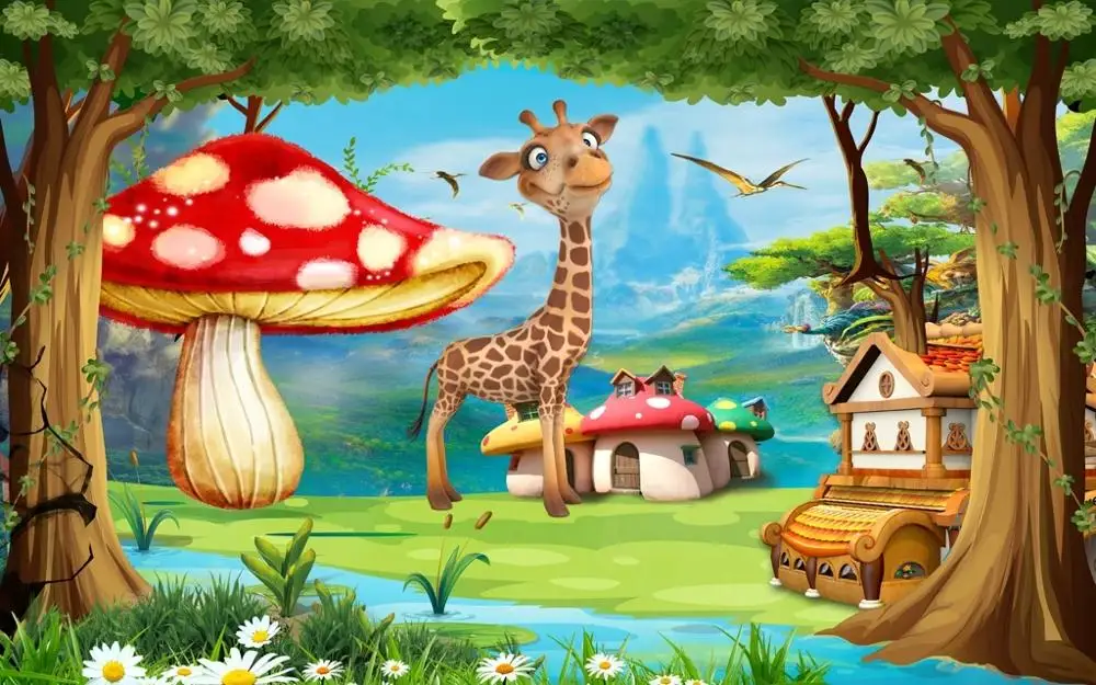 Купить Большие настенные 3D обои на заказ рай фантазия мультфильм гриб жираф детская