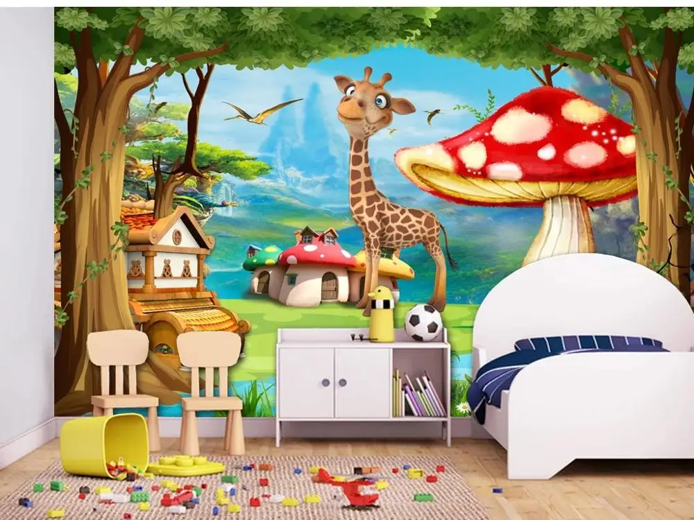 Большие настенные 3D обои на заказ рай фантазия мультфильм гриб жираф детская - купить