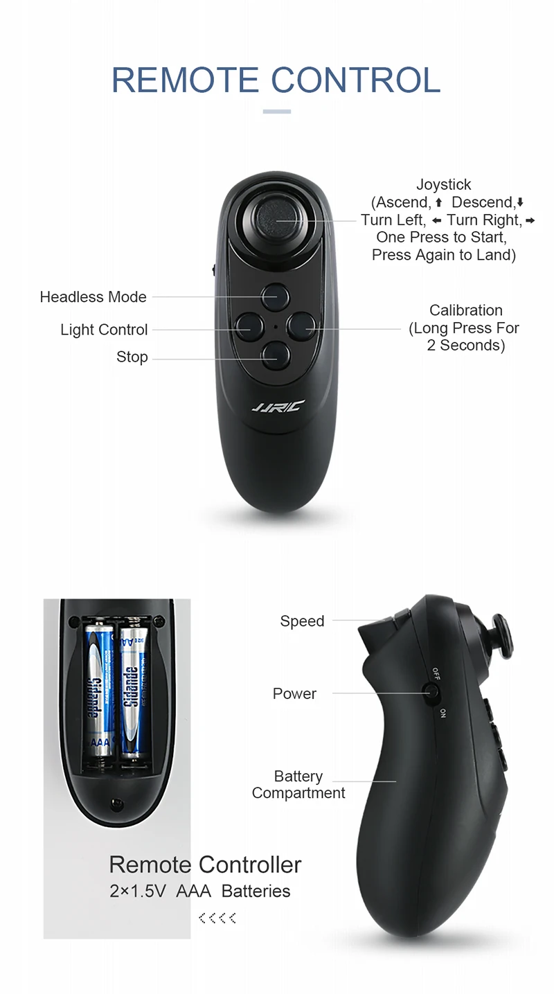 Функции: боковой полет, поворот влево/вправо, вверх/вниз, вперед/назад, 3D рулон, Wi-Fi FPV, контроль силы тяжести, Безголовый режим, удержание высоты