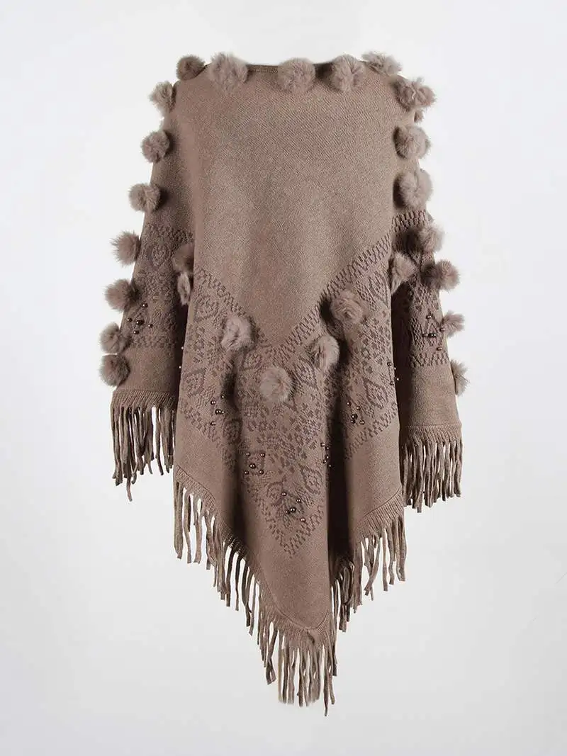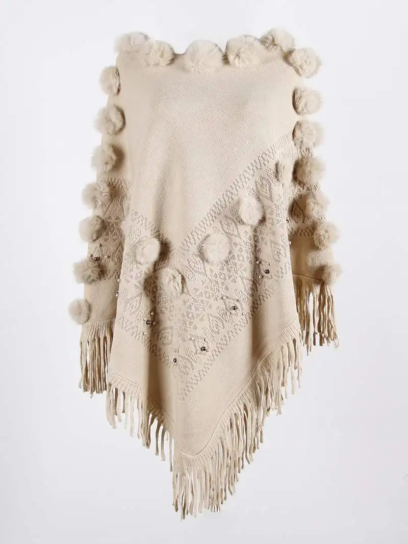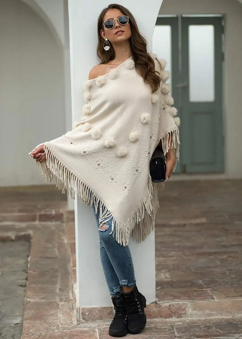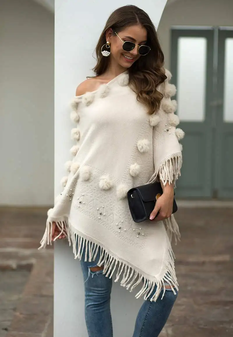 Новый модный весенний женский свитер Дамское бежевое пушистое пончо с - купить