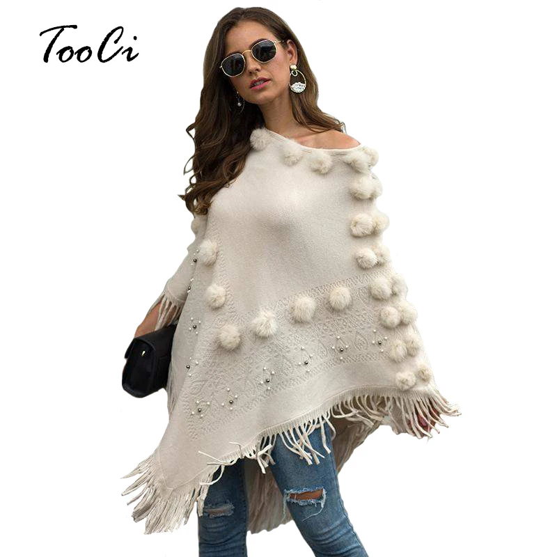 Купить Новый модный весенний женский свитер Дамское бежевое пушистое пончо с