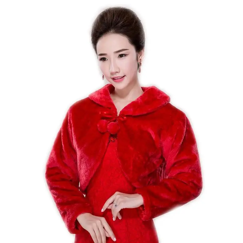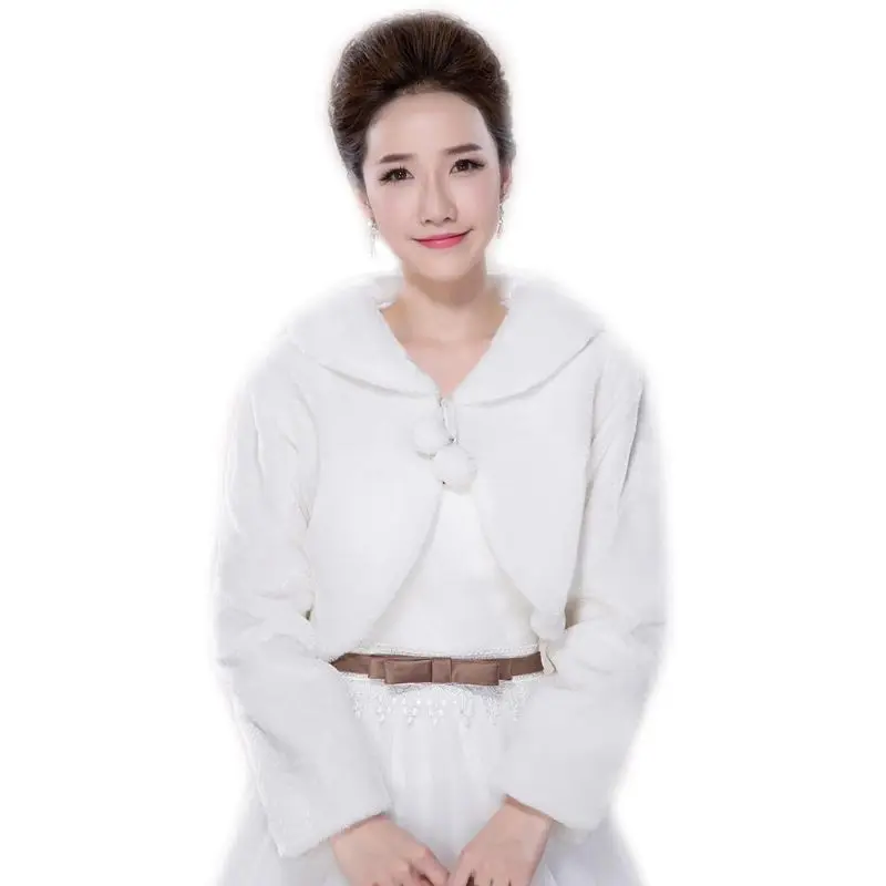 Купить Женская зимняя теплая плюшевая куртка-болеро с длинным рукавом Свадебная
