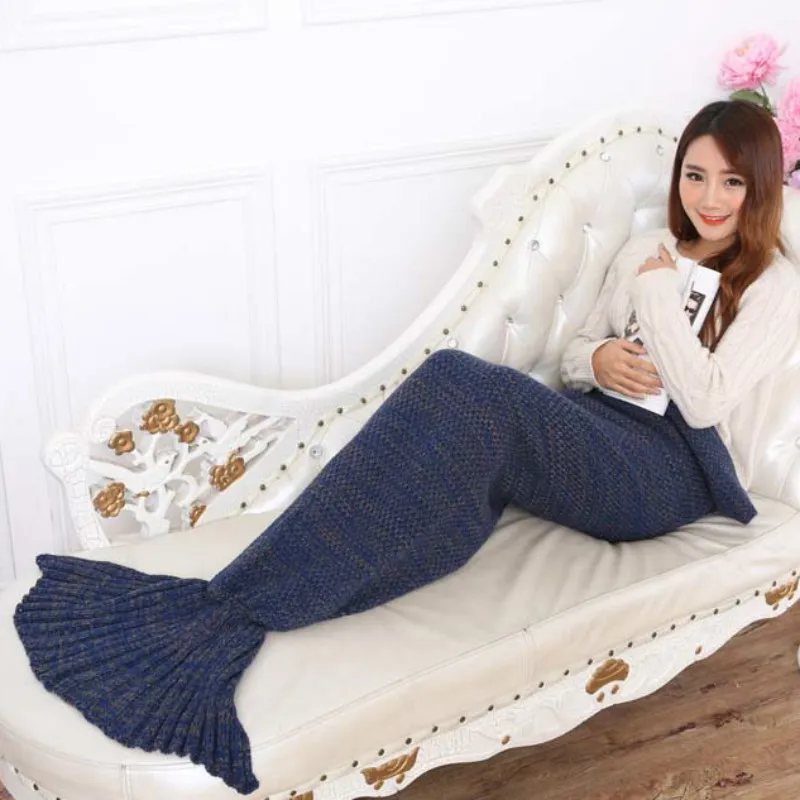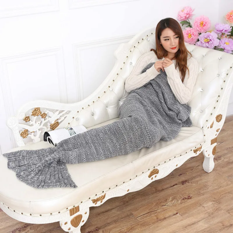 Mermaid Blanket Knitted Tail Child Sofa Cover Winter Imitation Cashmere Air Conditioning 90x50CM - Одеяло Русалки вязаное с хвостом для детей покрывало дивана зимой имитация кашемира кондиционированием воздуха 90x50 см - купить