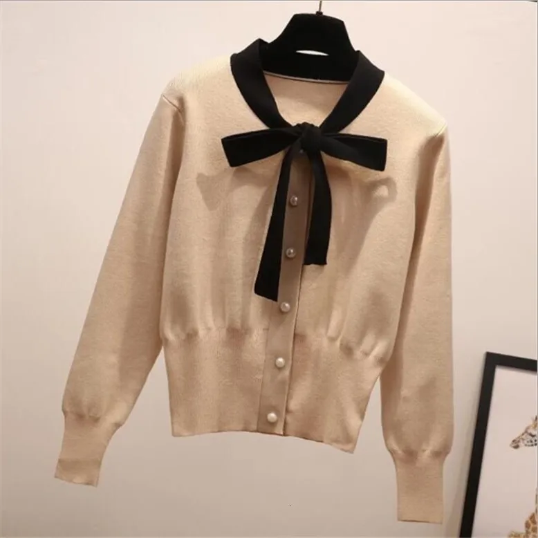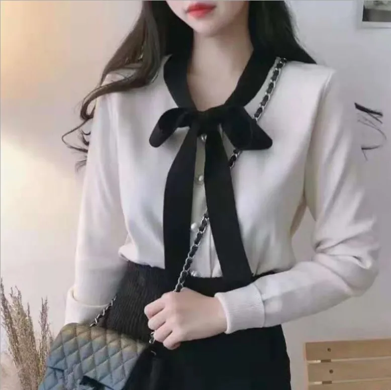Купить Элегантные женские свитера галстук-бабочка с жемчужиной шеи пуловеры
