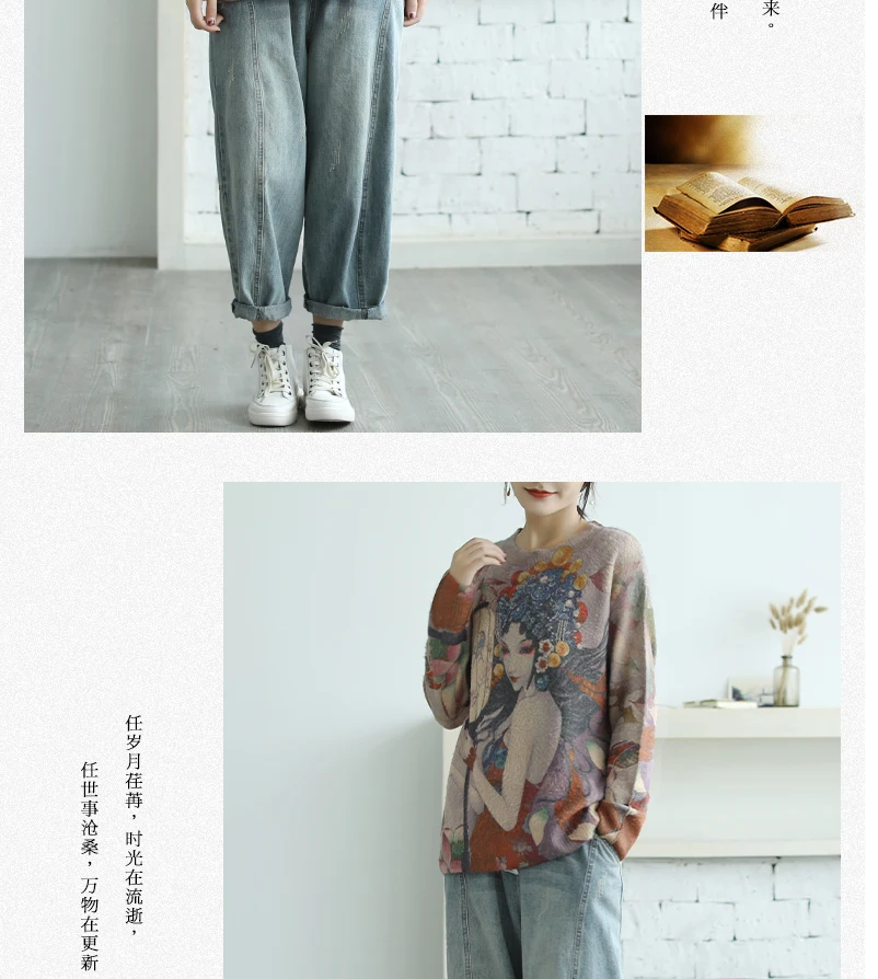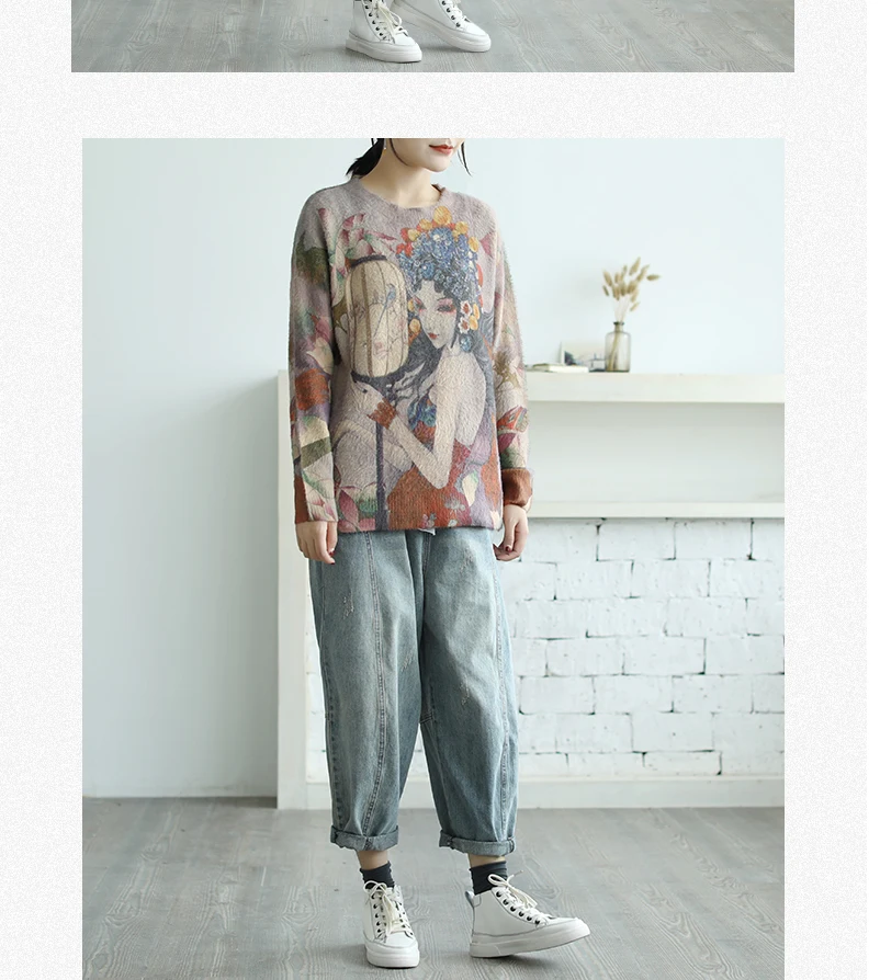 Отзывы о Spring Autumn Sweater Women 2020 New Knitting Loose Pullovers Tops O-Neck Retro Character Casual All-match Женская одежда
