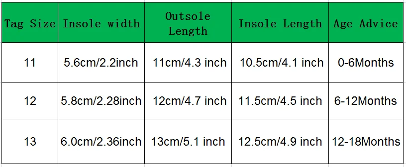 Стиль: модная обувь для кроватки В комплект входит: одна пара обуви Таблица размеров: