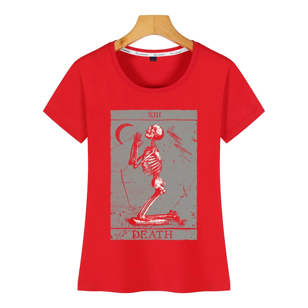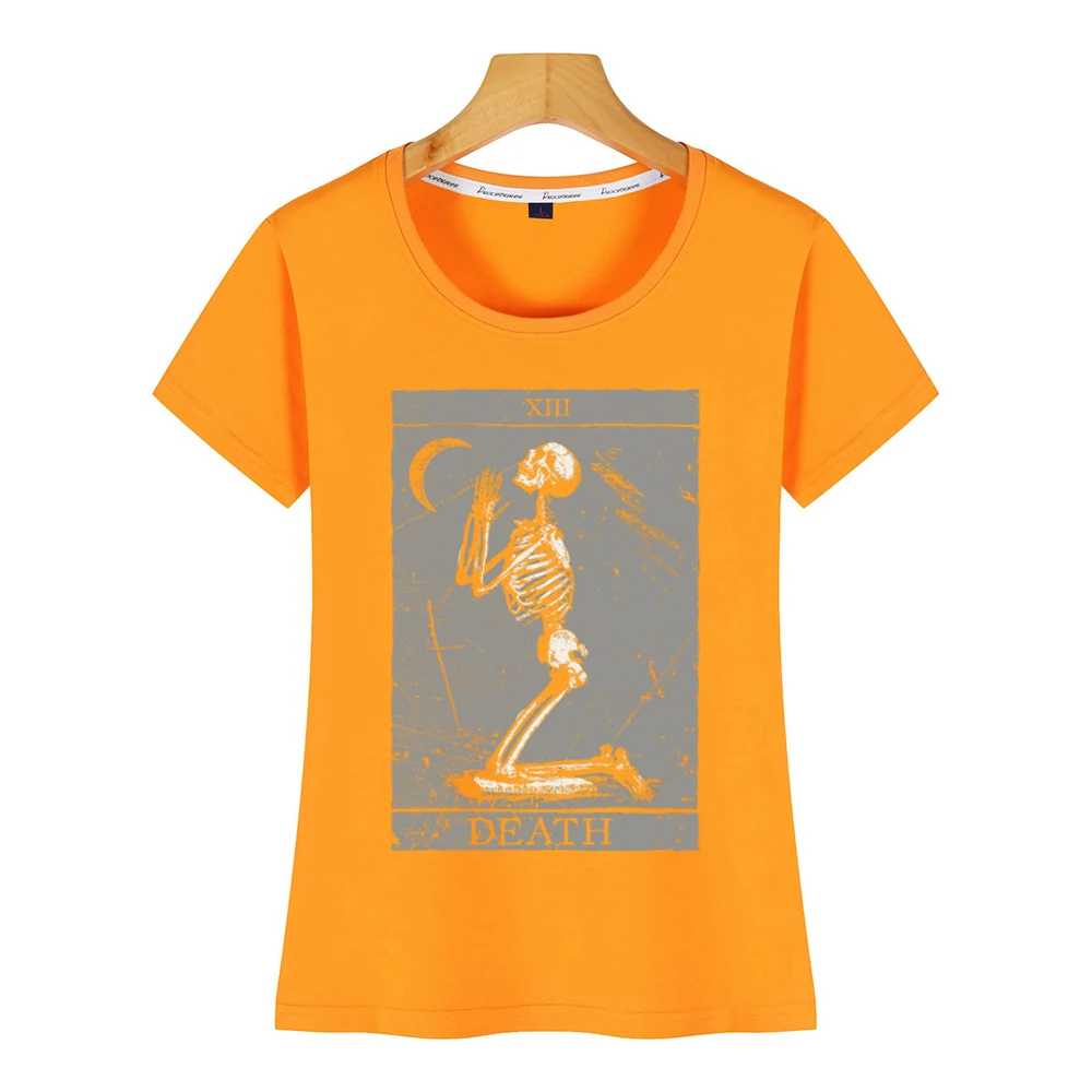 Отзывы о Женская Винтажная футболка с изображением карточки Таро смерти молитвы скелета