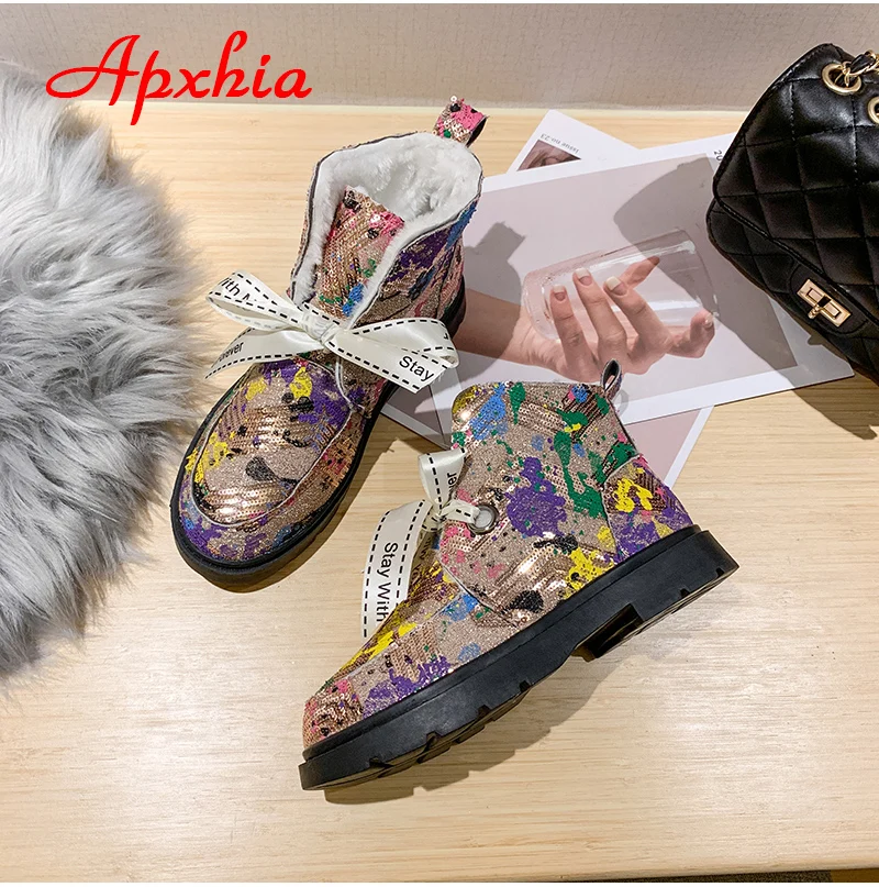 Отзывы о Женские зимние ботинки Aphixta яркие теплые камуфляжные ботильоны с надписью и