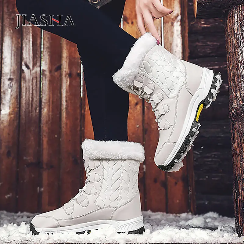Женские зимние ботинки; Новинка 2020 года; Модные теплые зимние ботинки на толстой нескользящей подошве; Женская обувь; Женская зимняя обувь из хлопка с высоким берцем