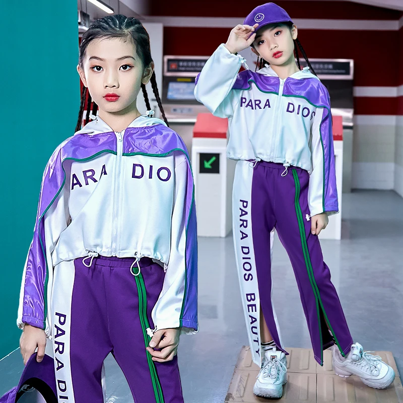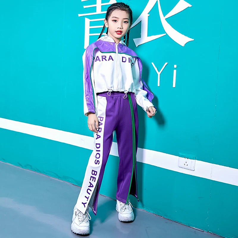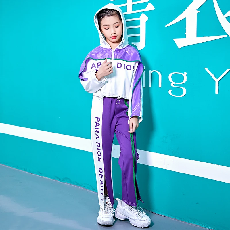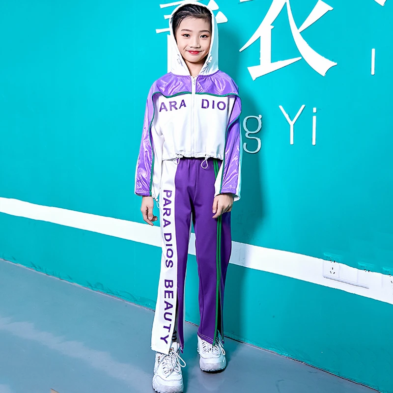 Купить Костюмы в стиле хип-хоп Модный Фиолетовый Топ штаны одежда для джаза девочек