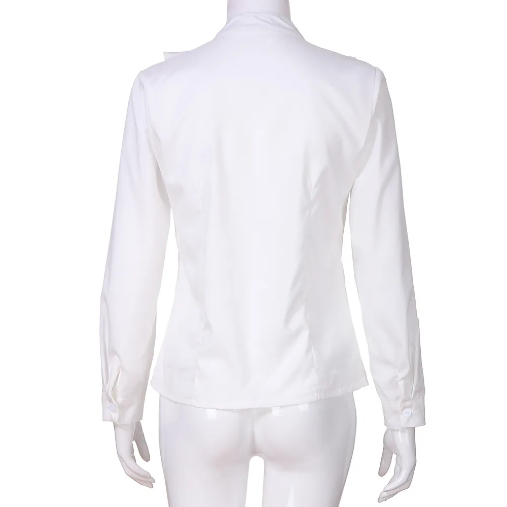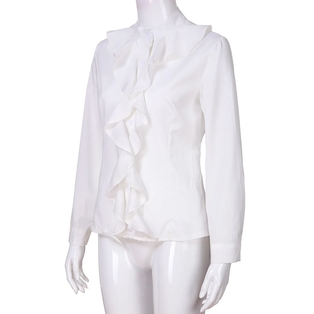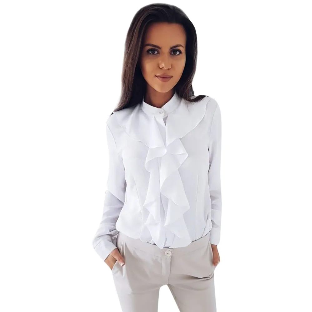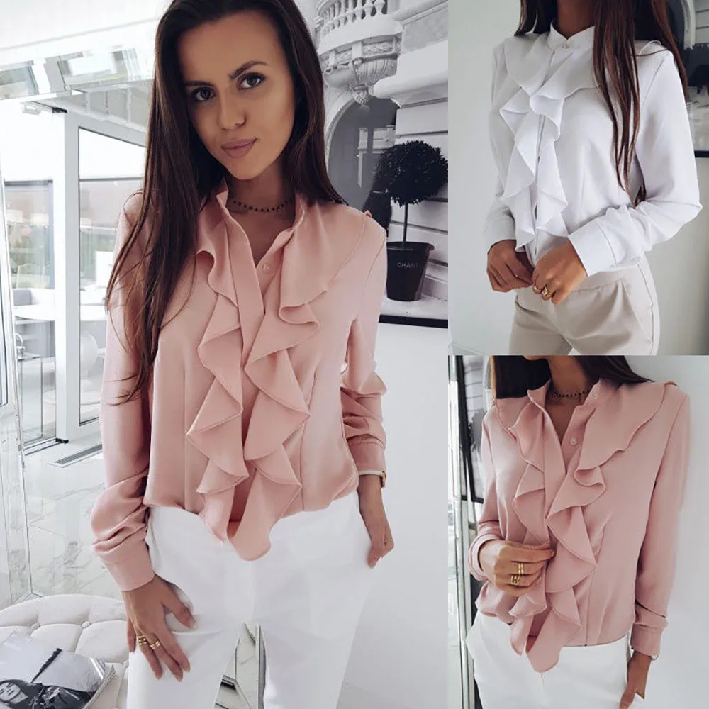 Женская блузка с длинными рукавами и оборками спереди, офисные Топы для женщин