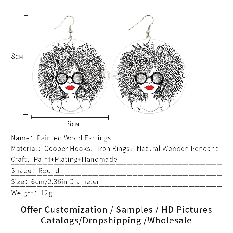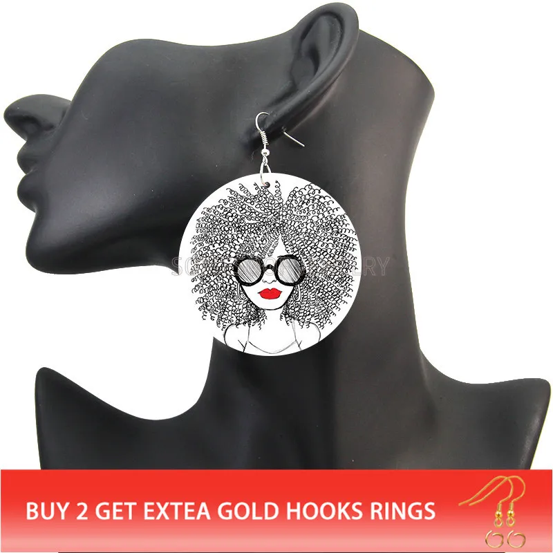 SOMESOOR афро Poppin девушка натуральные волосы деревянные висячие серьги с обеих - купить