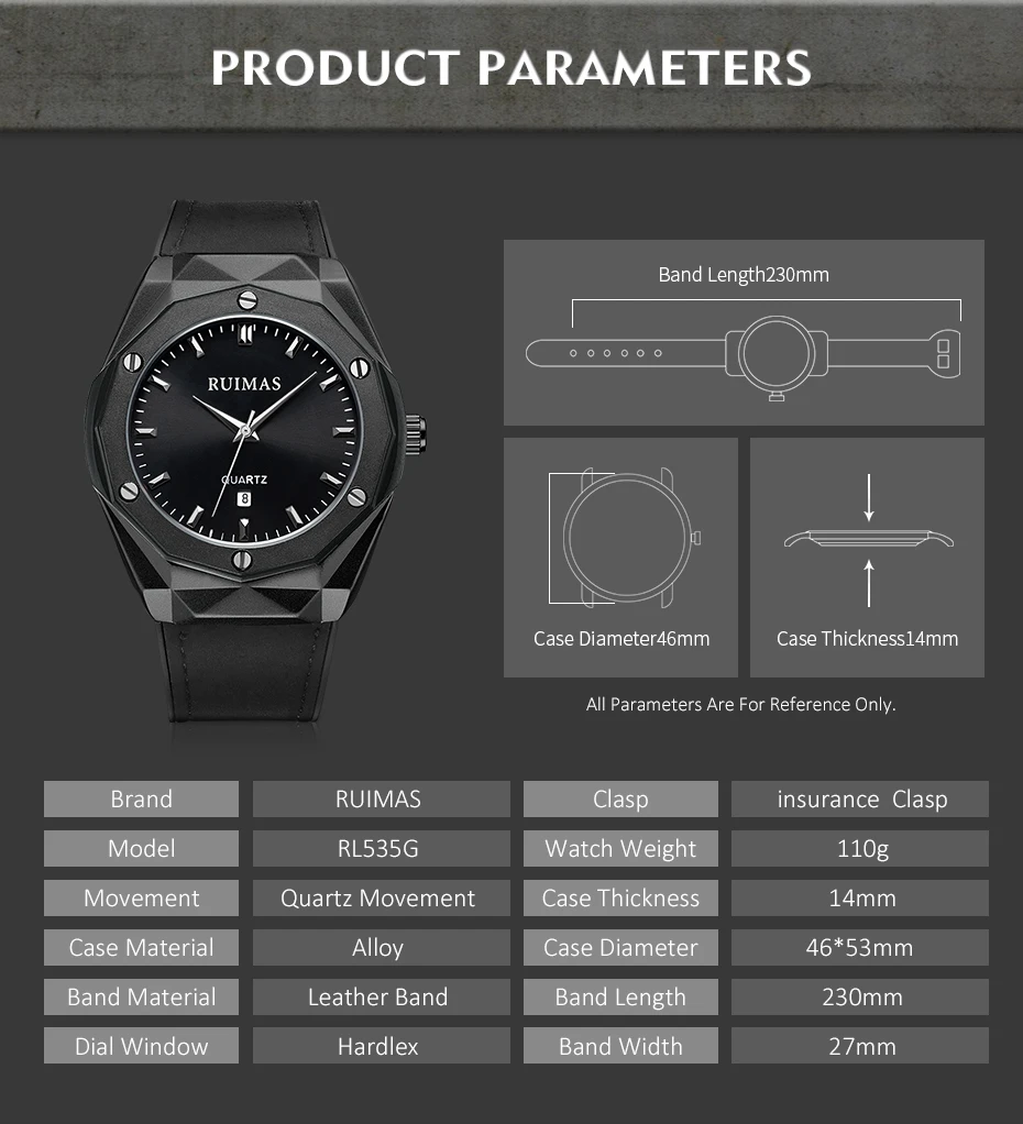 100% Новинка с биркой и высоким качеством. 3 АТМ/30 М Водонепроницаемость (не поддерживает душ, плавание и дайвинг); Сплав чехол; Кожаный ремешок для часов;