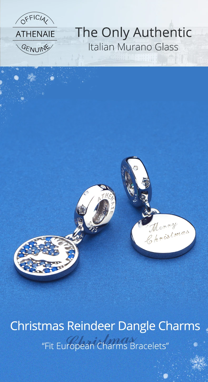 Женские серебряные подвески с оленями ATHENAIE Happy 925 пробы синие Подвески Украшения - купить