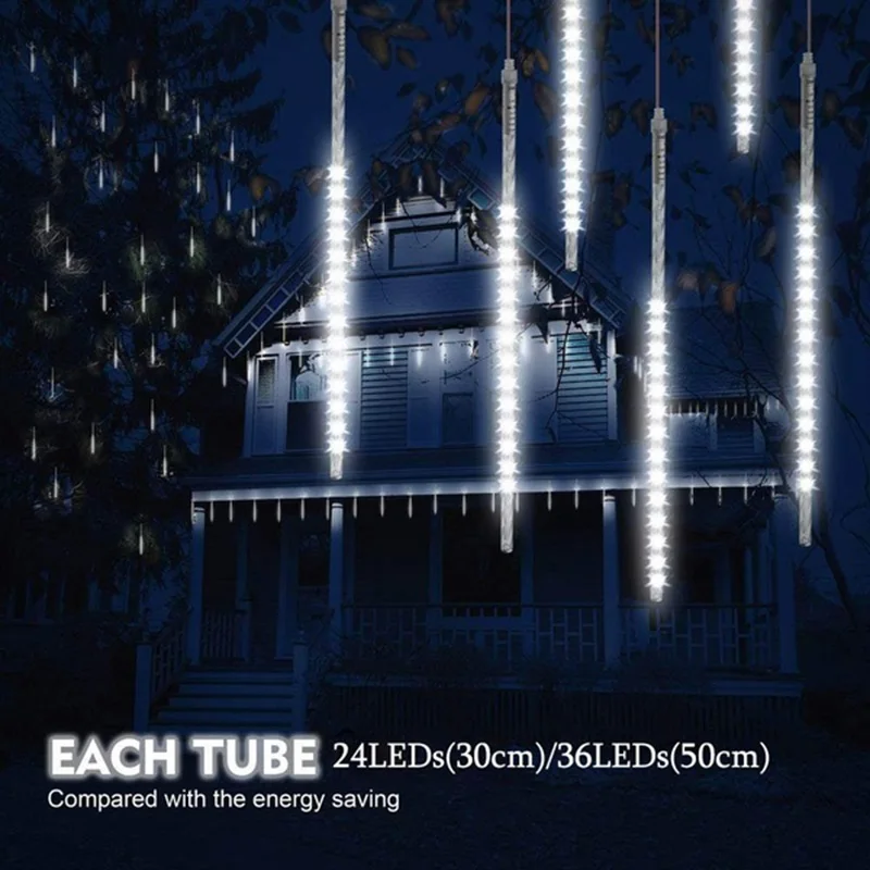 Купить Яркий яркий Метеор 50 см 8 трубок белый светильник светодиодный Метеоритный дождь