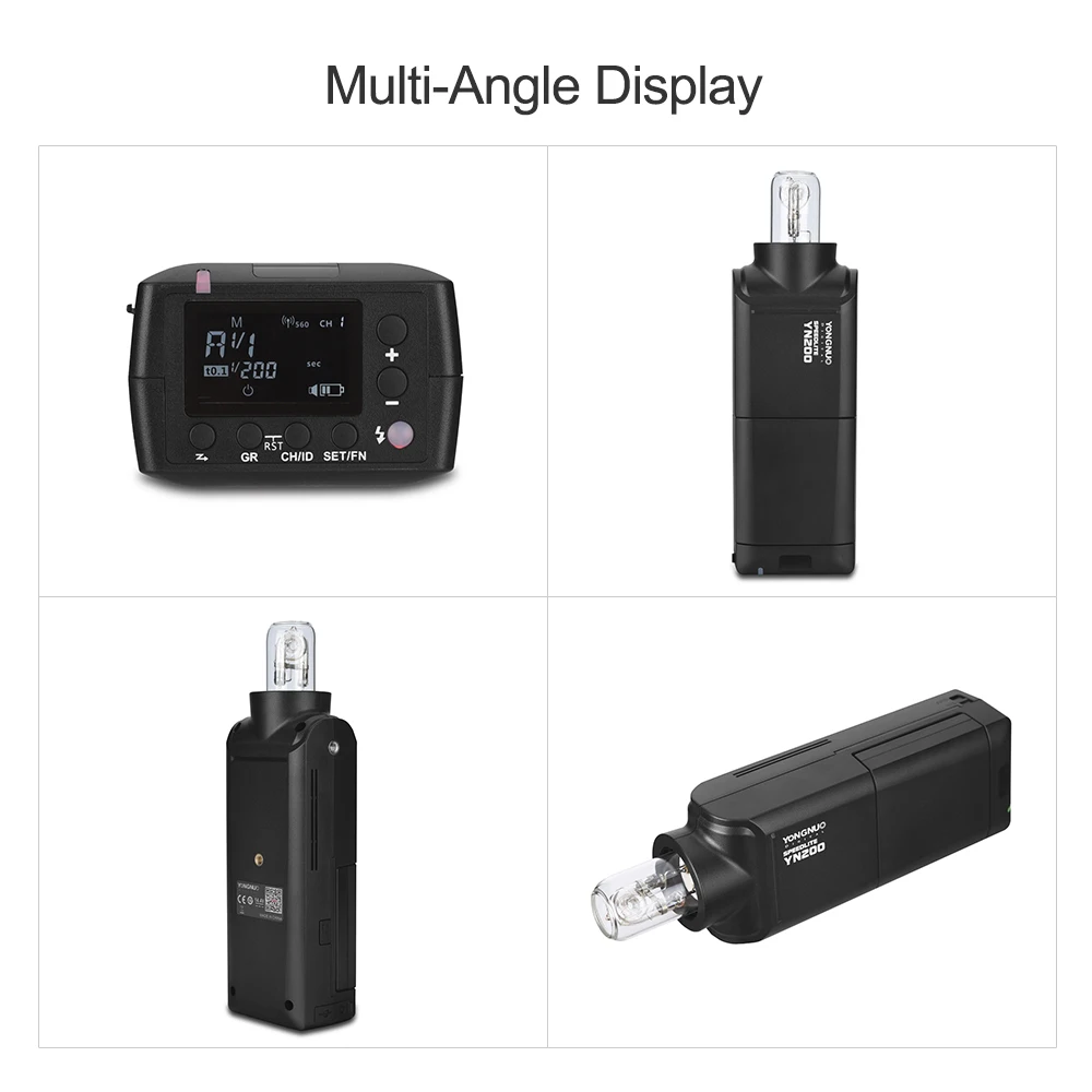 YN200-это первая мощная наружная вспышка YONGNUO, со вспышкой мощностью до 200 Вт, принимающая конструкцию блока питания литиевой батареи 14,4 В 2900 мА · ч, с системой рециркуляции экстремальной скорости, время переработки 2s, время вспышки на полном выходе может быть до 500 раз.