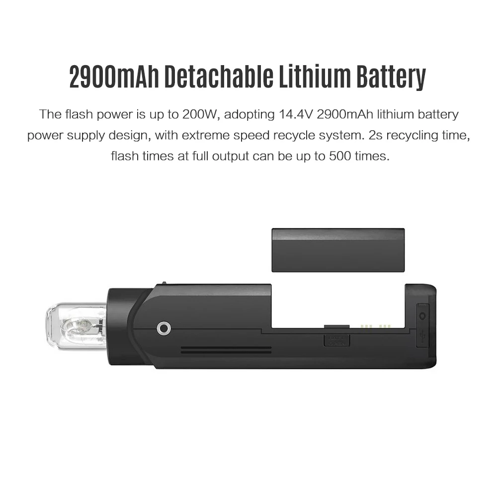 С помощью съемной голой трубки лампы, GN60 высокий индекс:GN60 at ISO100 (с помощью крышки отражателя). Поддержка TTL вспышка, ручная вспышка, флэш-памяти, ведущая высокоскоростная вспышка sync, но не более чем на 1/8000s. 16 каналов, до 10000 настраивается фотограф ID, шесть флэш-памяти группы A/B/C/D/E/F. Оснащен байонетным креплением, аксессуары, такие как отражающая крышка, могут быть установлены. Он оснащен аккумулятором большой емкости с импортированной ячейкой, с помощью зарядного устройства интерфейса Type-C, который поддерживает быструю зарядку с адаптером питания PD protocol (исключается).