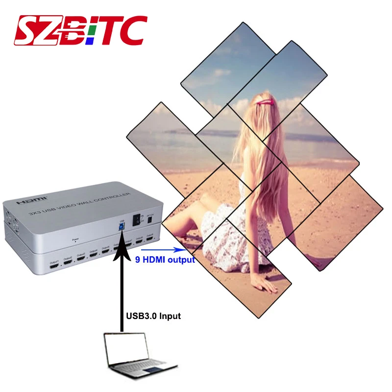 3x3 контроллером видеодисплея способен данных пуш-ап видео USB3.0 порт для max.9 dispays, чтобы закончить сплайсинга весь видео и фото. Порт USB3.0 поддерживает Макс 4k Разрешение Вход и выход HD видео изображения для дисплееров.