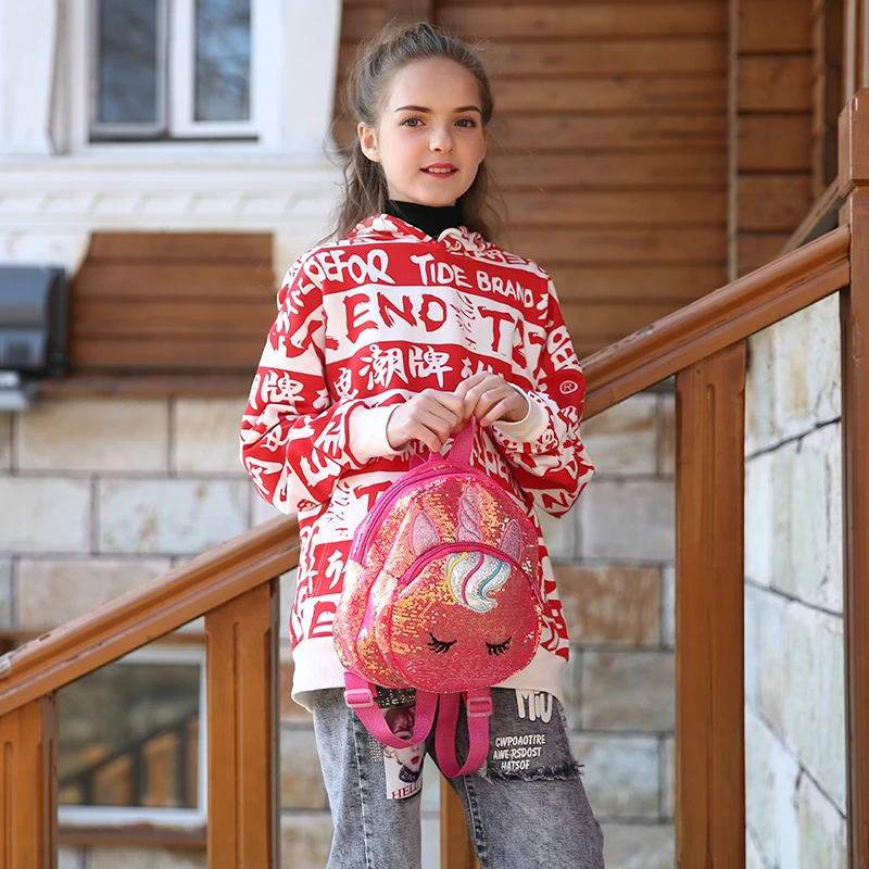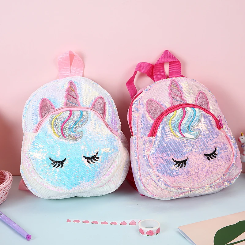 Купить Kindergarten Mini Embroidery Unicorn Backpack Student Cartoon Sequin Schoolbag Girl 4 Color Small Preppy Style Zipper | Багаж и сумки