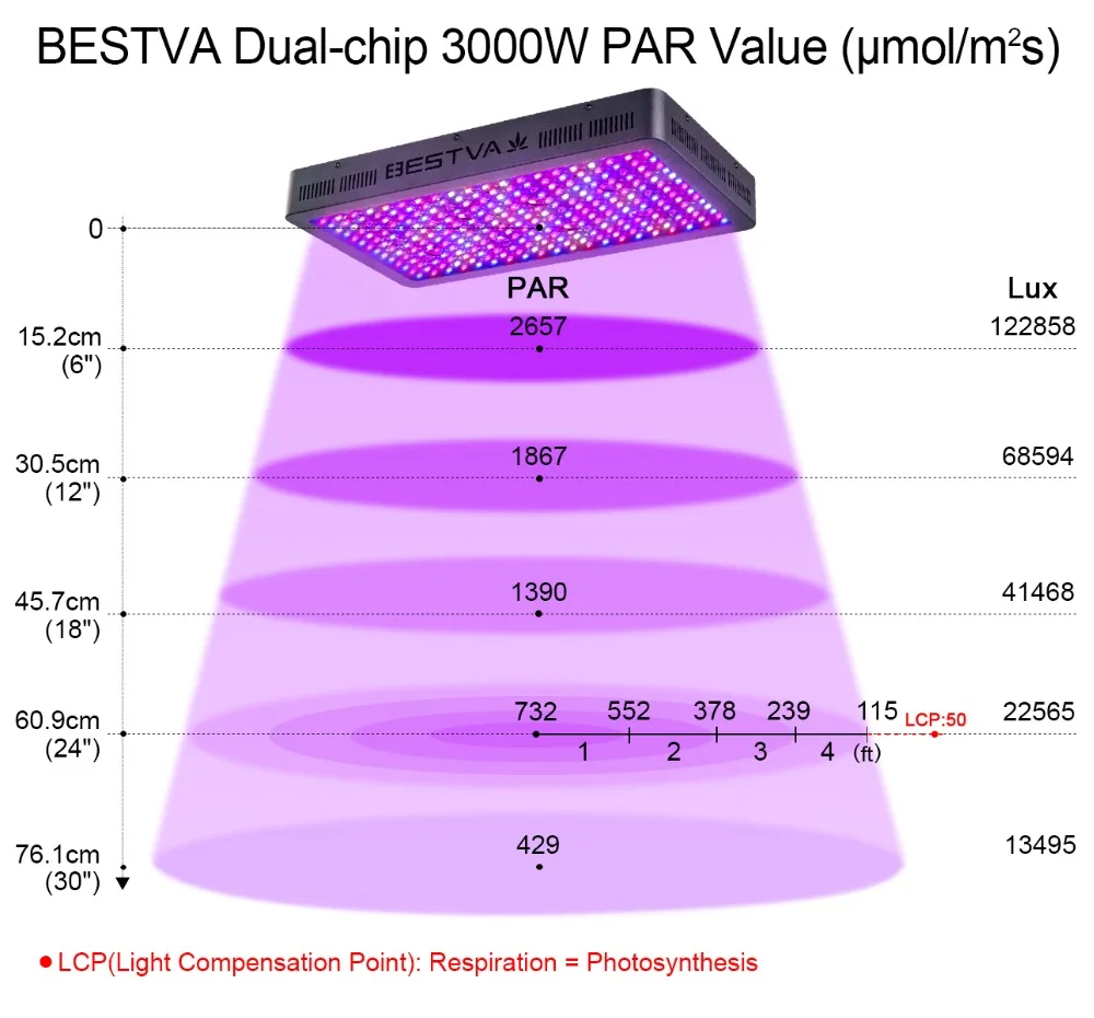 Площадь покрытия: около 7,5*7,5 СкваНоги (площадь освещения и высота изменяются в соответствии с различными растениями и средами)