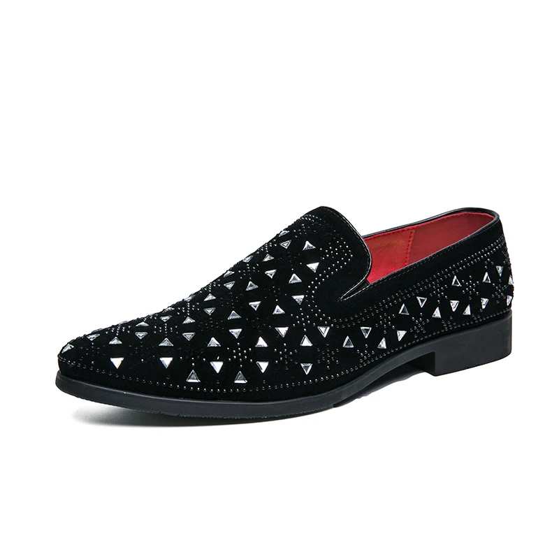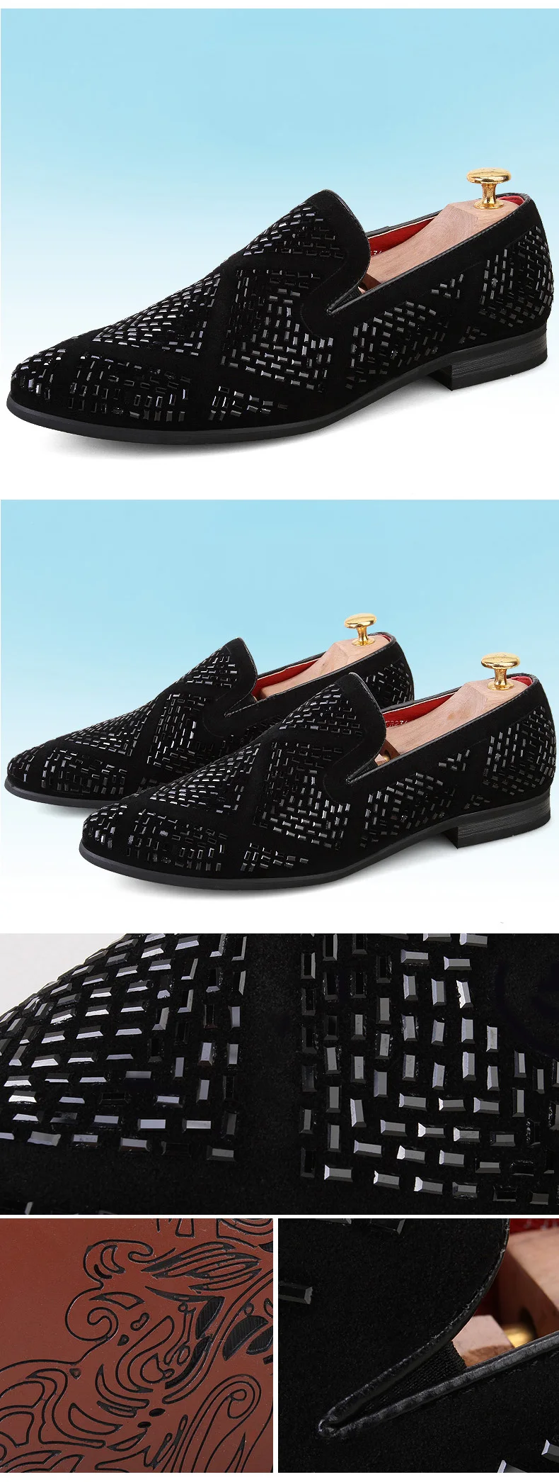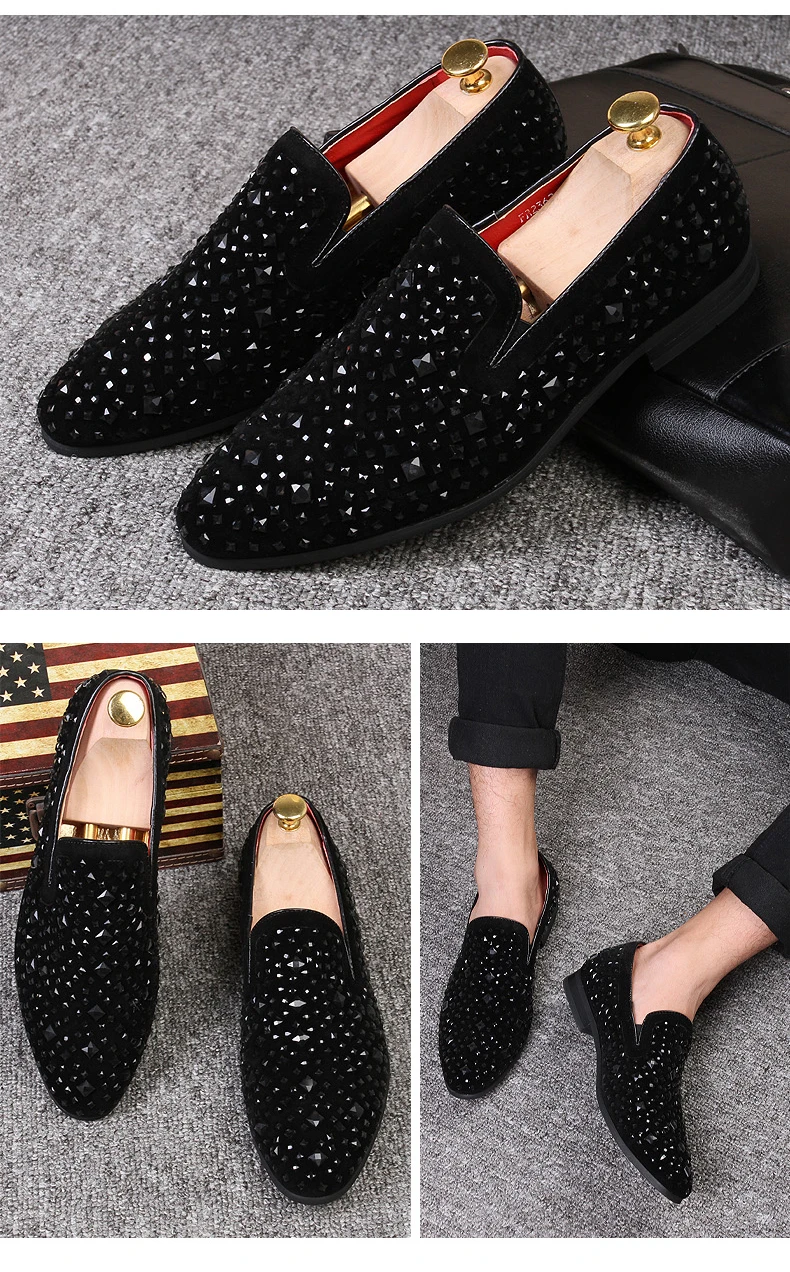 Купить Брендовые благородные черные мужские туфли Стразы QUAOAR бархатные Роскошные