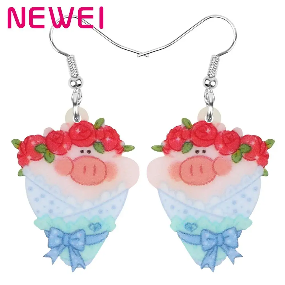 Отзывы о Newei акриловый День Святого Валентина свинья Роза сережки в виде букета животное