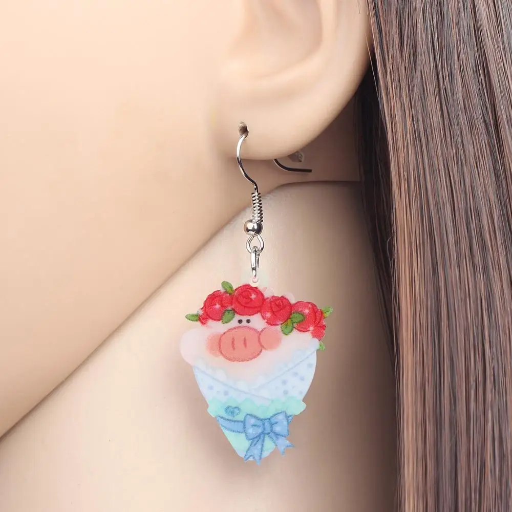 Newei акриловый День Святого Валентина свинья Роза сережки в виде букета животное - купить