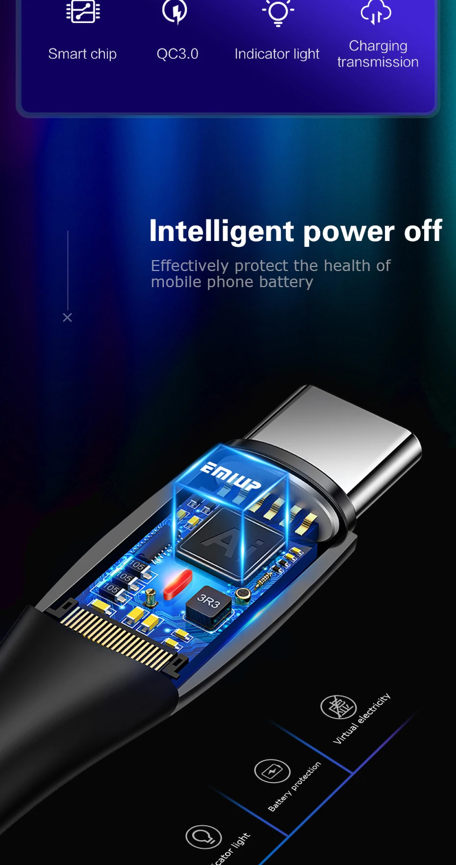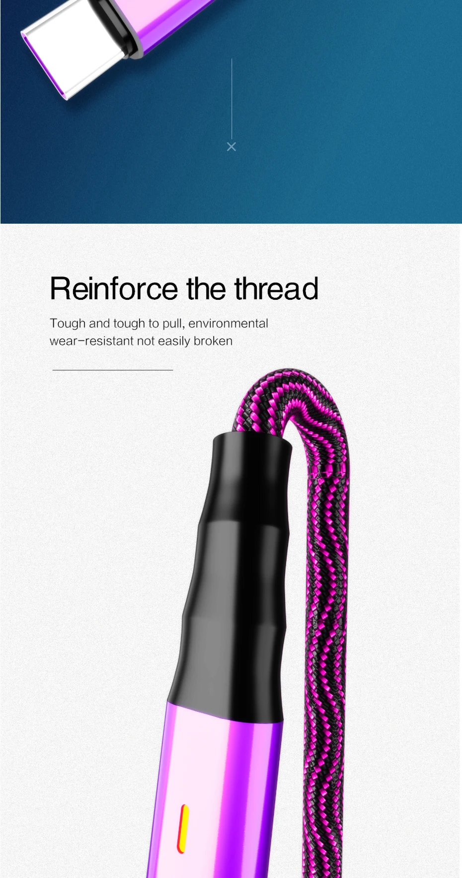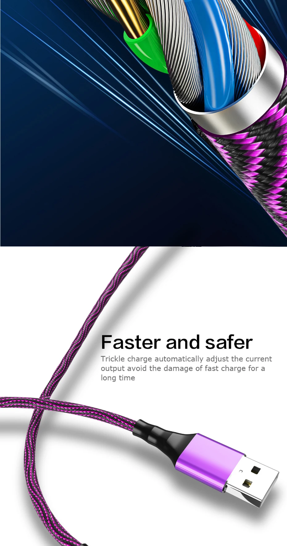 Smart power Off Micro USB кабель 3A нейлон Быстрая зарядка для передачи данных samsung Xiaomi LG - купить