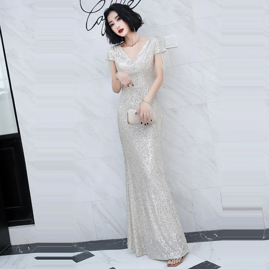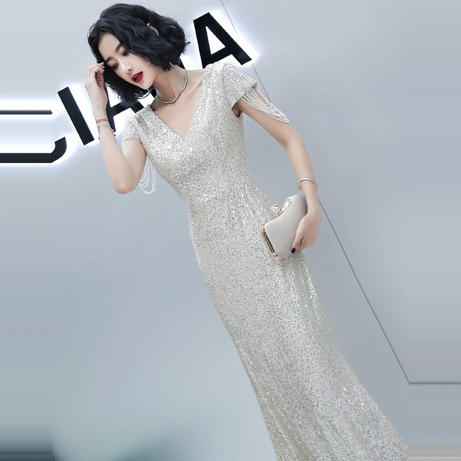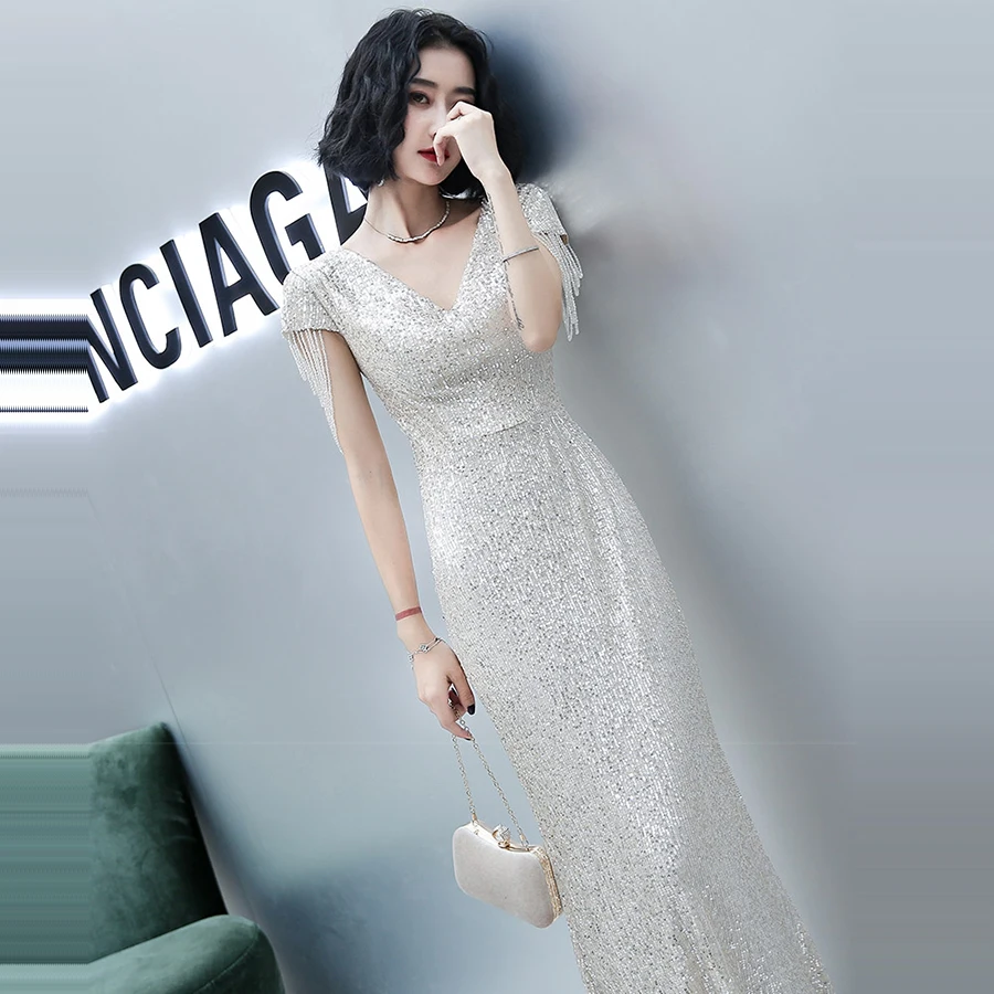 Вечерние платья It's Yiiya, блестящее вечернее платье с блестками, длинное платье с v-образным вырезом, K015 размера плюс, элегантные вечерние платья 2020
