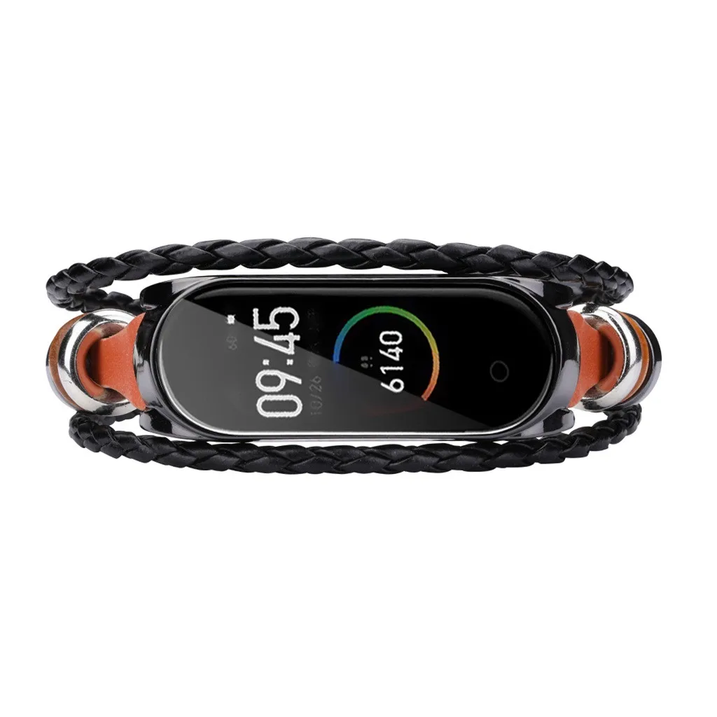 1 x модный кожаный браслет с бусинами, Плетеный ремешок для Xiaomi Mi Band 4