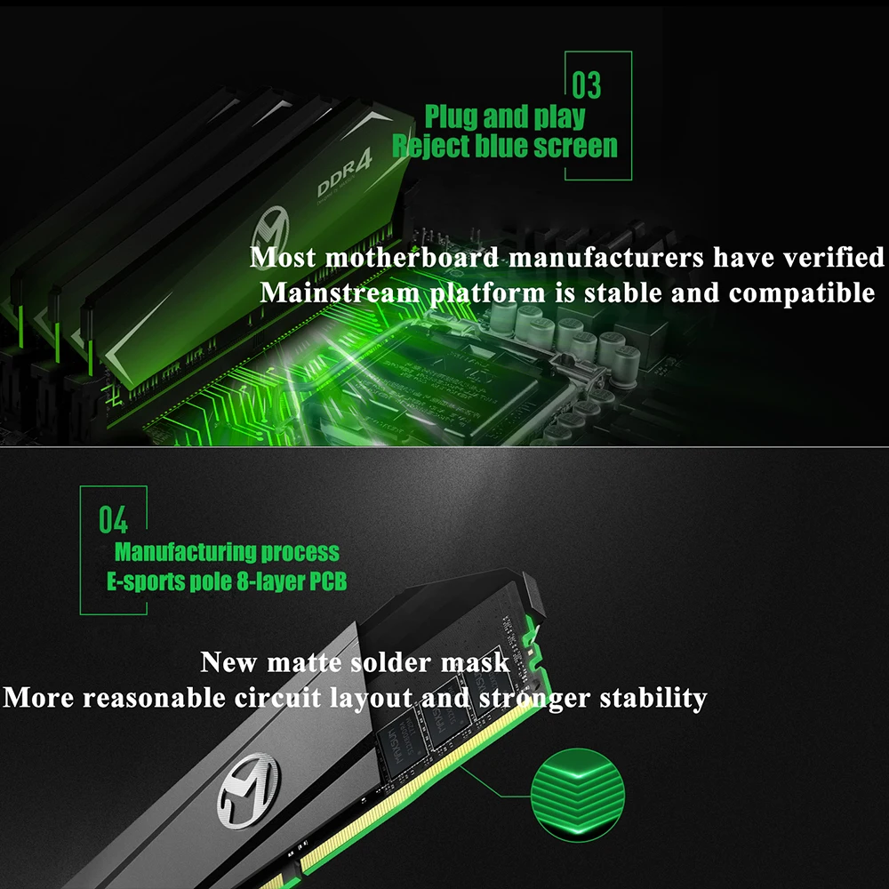-Марка ОЗУ: MAXSUN-Модель: Терминатор DDR4 Q0/Q3-Емкость: 8 ГБ-частота памяти: DDR4-2666 МГц/3000 МГц-время: DDR4 4G/8G/16G 2400 МГц (17-17-17-39),-DDR4 8 Гб 2666 МГц (19-19-19-43), DDR4 8 Гб 3000 МГц (16-18-18-38)-Рабочее напряжение: 1,2 в-Тип интерфейса: 288pin DDR4 DIMM-Гарантия: пожизненная гарантия-материал радиатора: алюминиевый сплав-PCB: 8/10 layar высокоскоростная плата сигнала-Размер продукта: 142mm49. 7mm8. 5 мм-Размер упаковки: 177mm77mm12mm-Рабочая температура: 0 ° C ~ 70 ° C