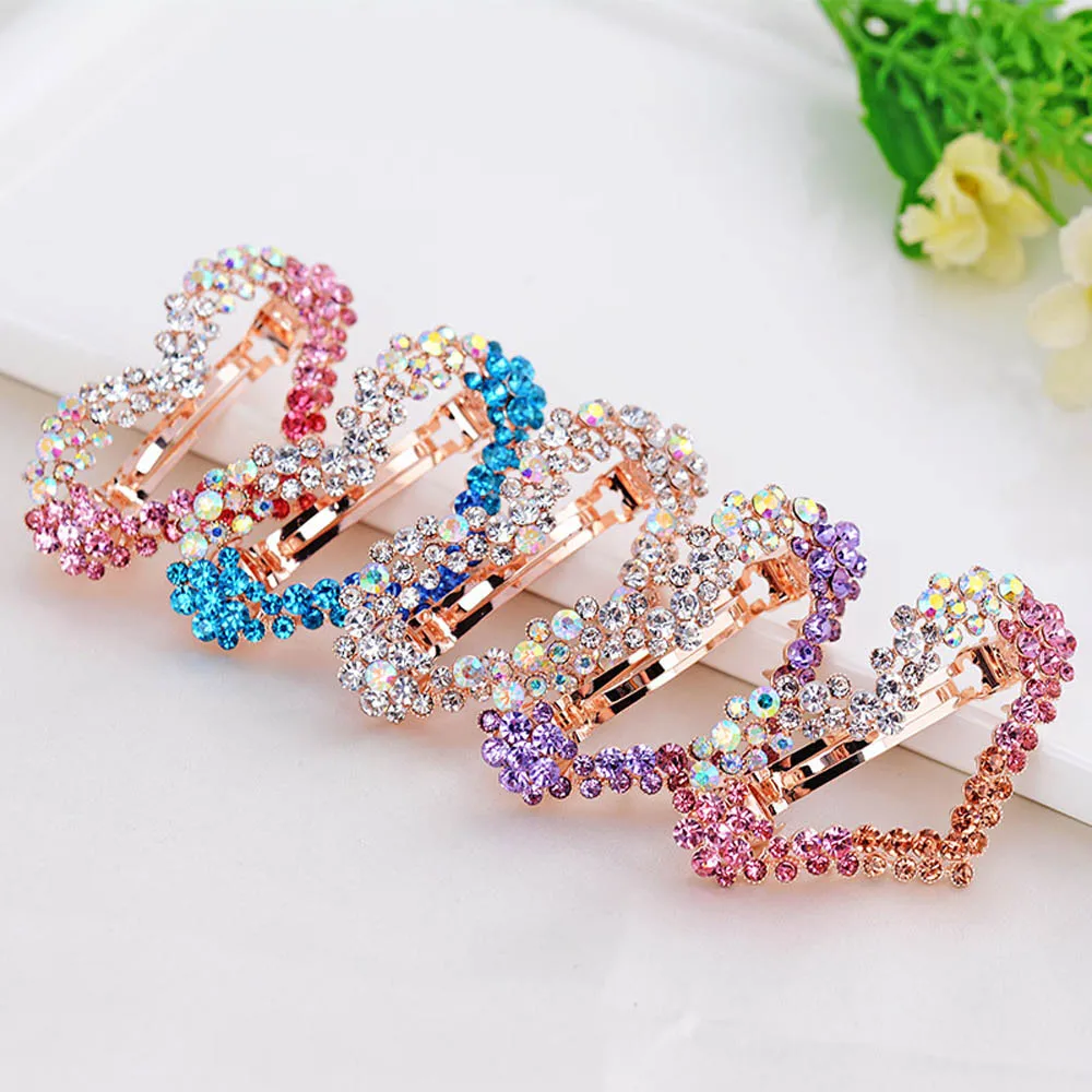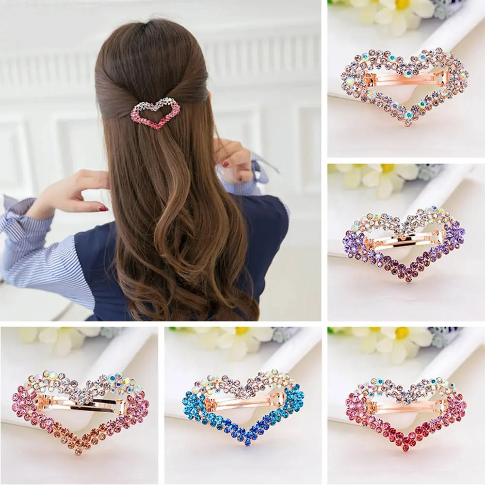 Купить 1Pc Colorful Heart Rhinestone Gradient Color Hair Clip Glitter Hollow Alloy Spring Girls Headwear Fashion Handmade Barrette |