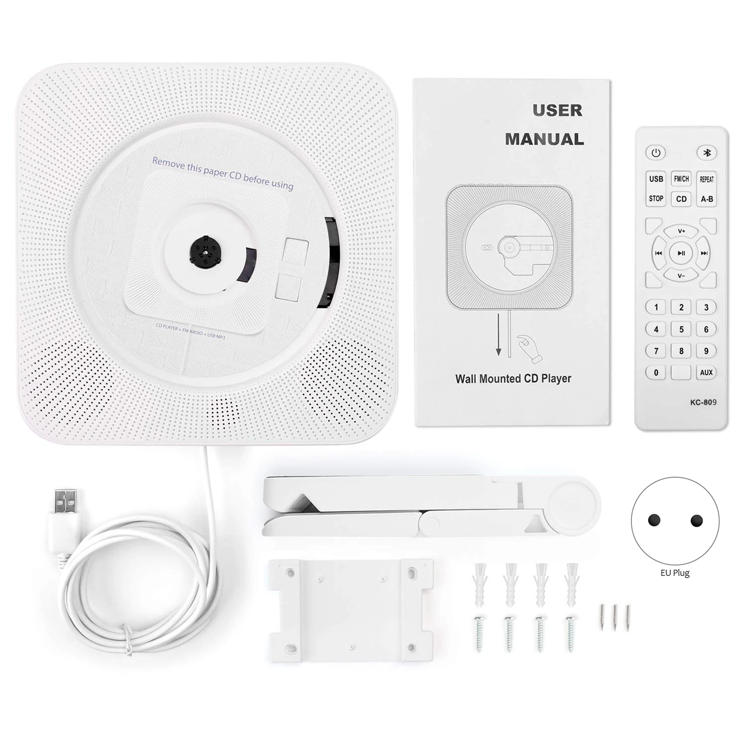 [5 в 1 Функция] 1. Портативный CD-плеер, 2.FM радио, 3. Bluetooth HiFi динамик, 4) мини домашний тахометр, 5) USB флэш-накопитель плеер. Он предлагает вам все удобства современных технологий. Вы можете играть свою любимую музыку в вечерние/студии/массажа/йоги/отдыха, или просто использовать его в качестве радио, чтобы получать местные новости.[Уникальный дизайн] креативный Настенный дизайн с выдвижным переключателем для легкой установки на стене, классический и компактный. Кроме того, имеется настольная подставка и пульт дистанционного управления. Вы можете поместить CD-плеер в гостиную, столовую, спальню или любое место, которое вам нравится. Потяните шнур питания, чтобы открыть и насладиться музыкальным стилем жизни!
