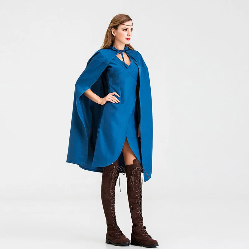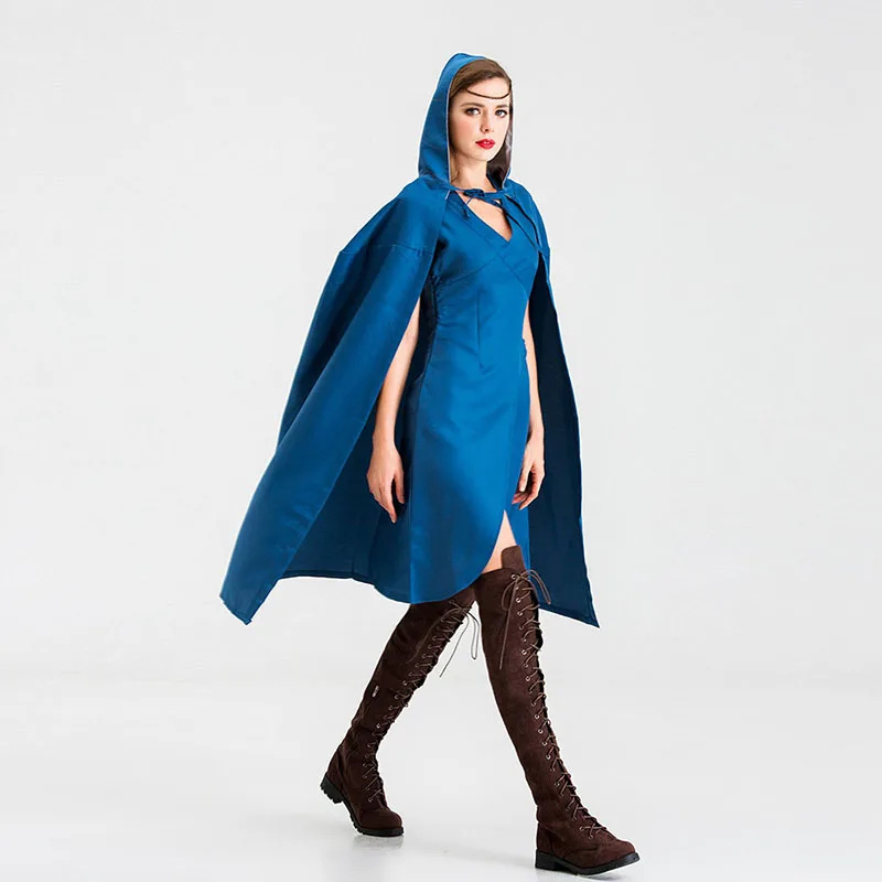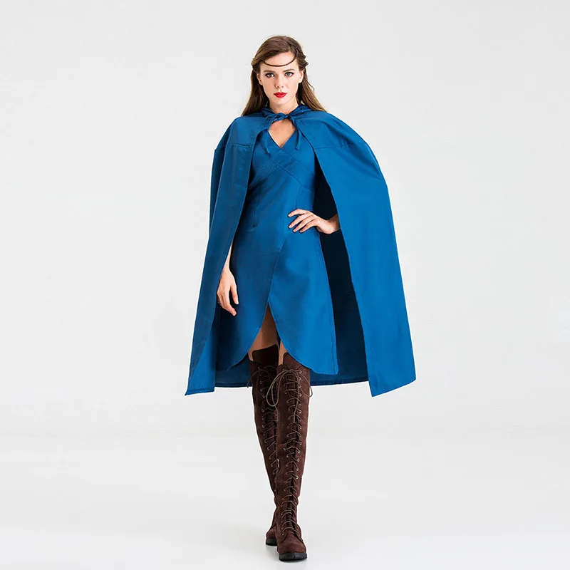 Маскарадный костюм для мамы драконов Дейенерис Таргариен, маскарадный костюм Королевского синего цвета, нарядное платье, плащ с капюшоном, комплект на Хэллоуин для женщин