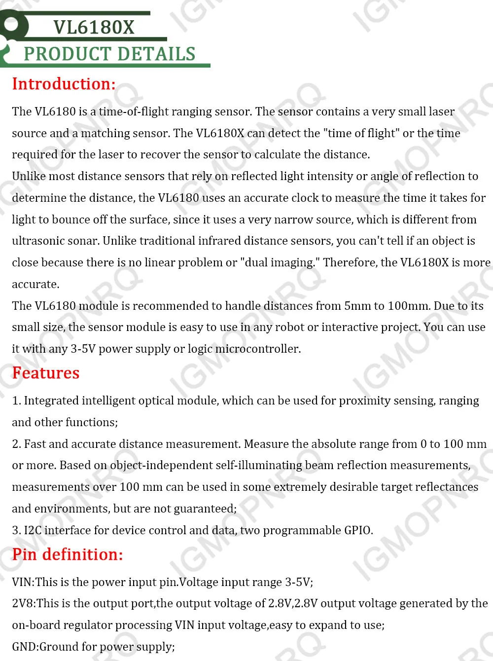 Отзывы о Дальномер VL6180 VL6180X модуль оптического датчика дальности для интерфейса Arduino I2C 3 В