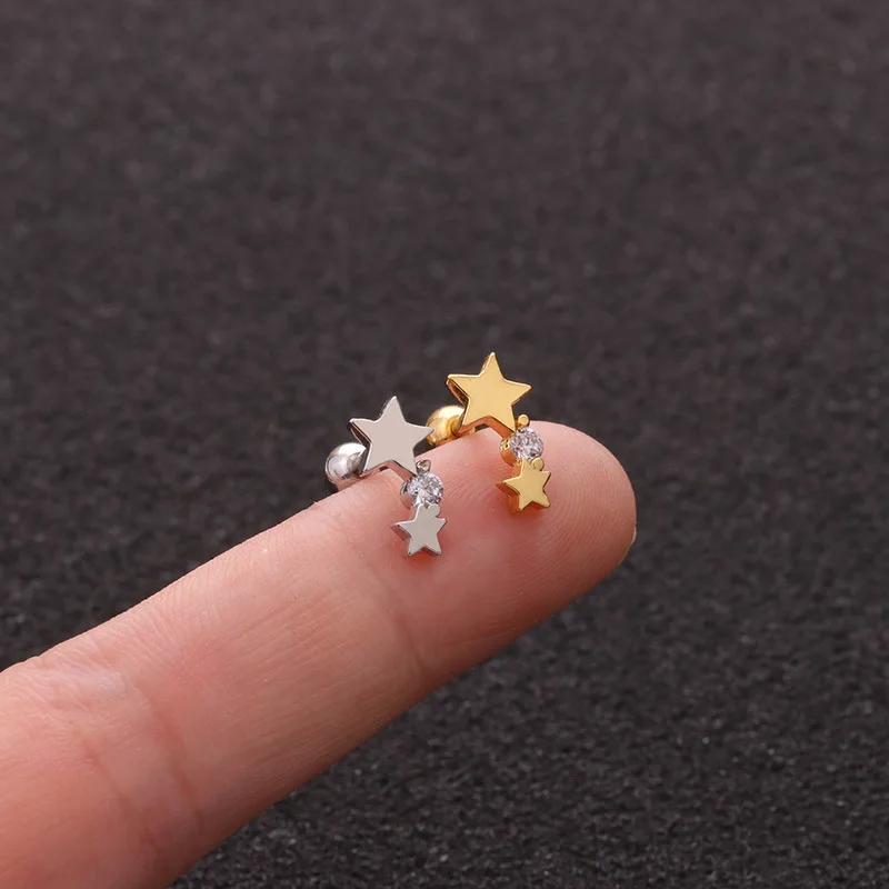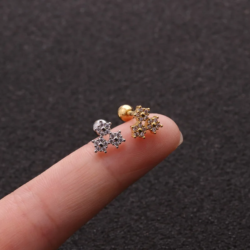 Треугольник Сердце цветок башня Cz Шпильки для ушей спираль пирсинга хрящей серьги раковины Rook Tragus шпильки для пирсинга ювелирные изделия