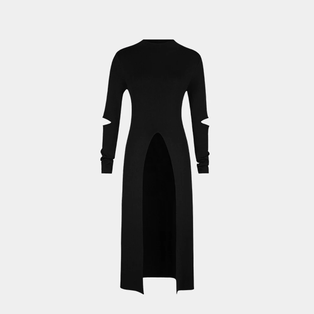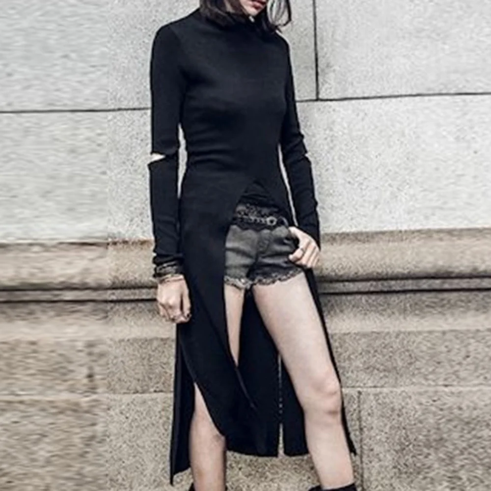 Купить Женский офисный топ с разрезом Rosetic готический черный длинный тонкий