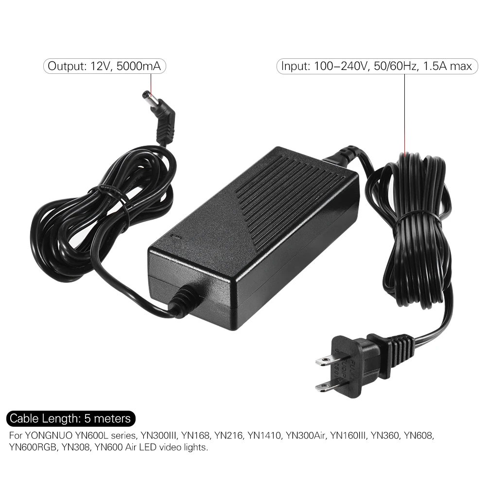Светодиодная лампа для видеосъемки YONGNUO 12V 5A AC Мощность адаптер с вилкой формата US - купить
