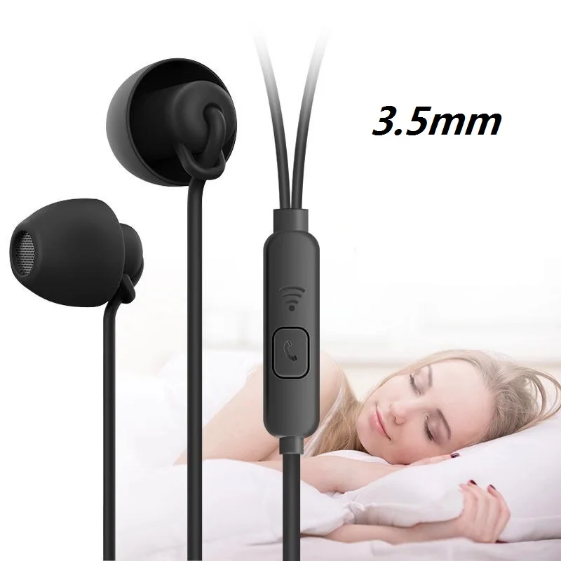Мягкие силиконовые наушники для сна, легкие наушники с микрофоном, 3,5 мм, наушники с шумоподавлением для телефона