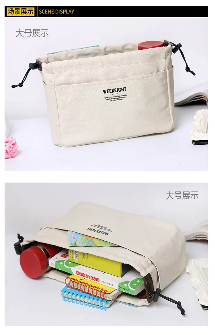 Посылка, хлопковая Холщовая Сумка для хранения, сумка-вкладыш, сумка для хранения, отделочная косметичка, органайзер, сумка в сумке