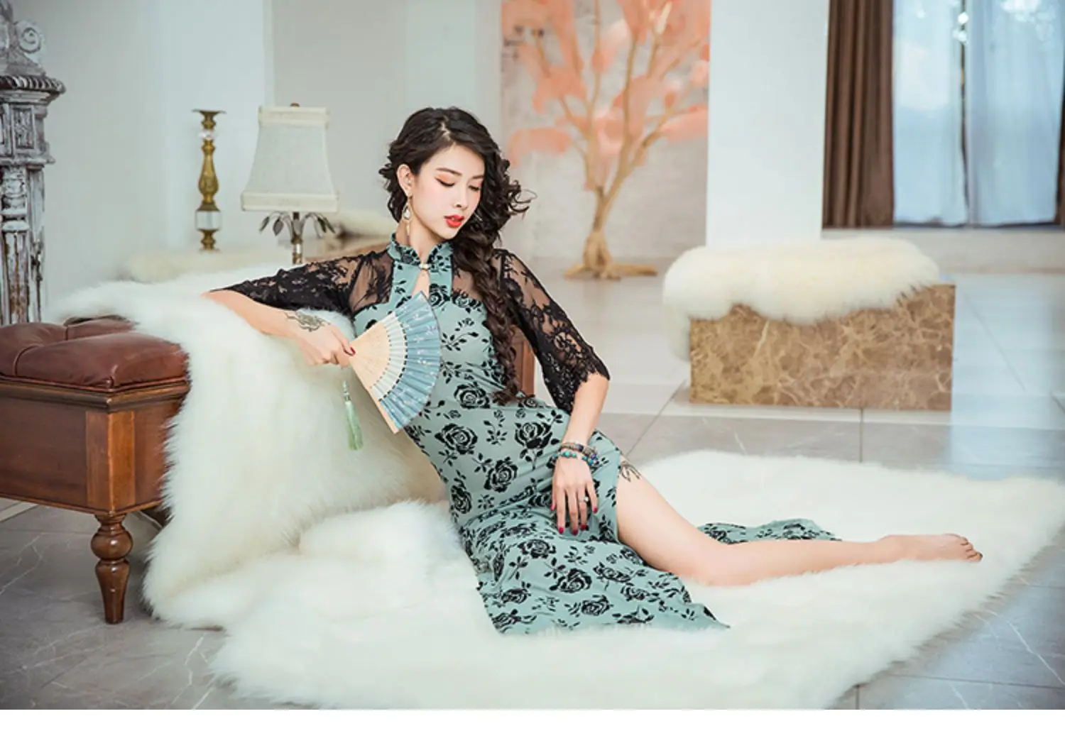 Отзывы о Belly dance uniforms Chinese cheongsam suits classical costumes women bellydance one-piece dress sey lace long WD40 Тематическая