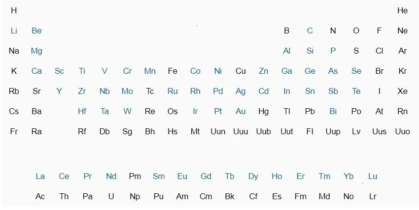 * Периодическая таблица (все синие элементы могут быть предоставлены нами)