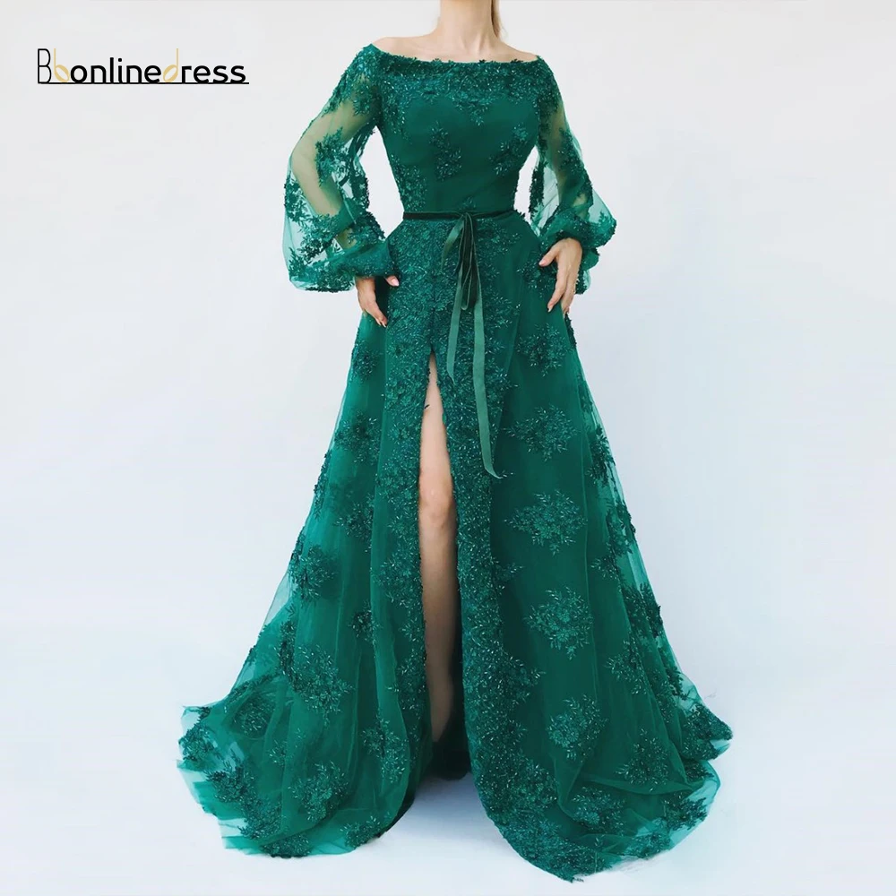 Купить Вечерние платья зеленая аппликация для вечернего Длинные вечерние с бисером и