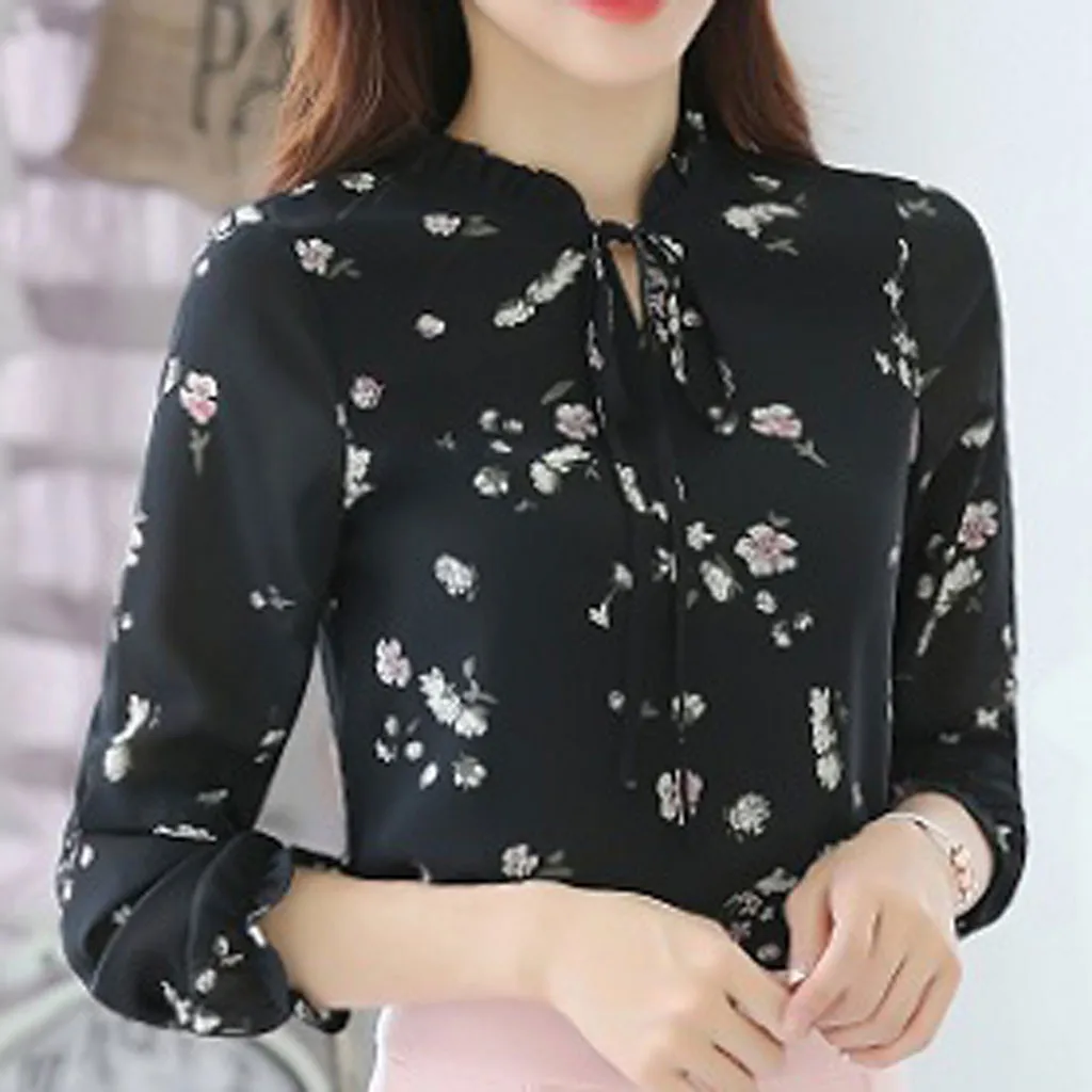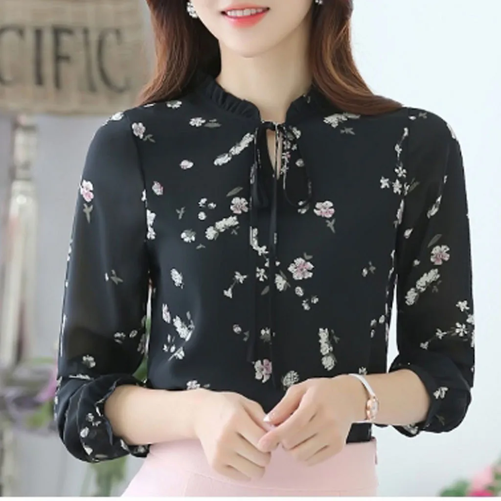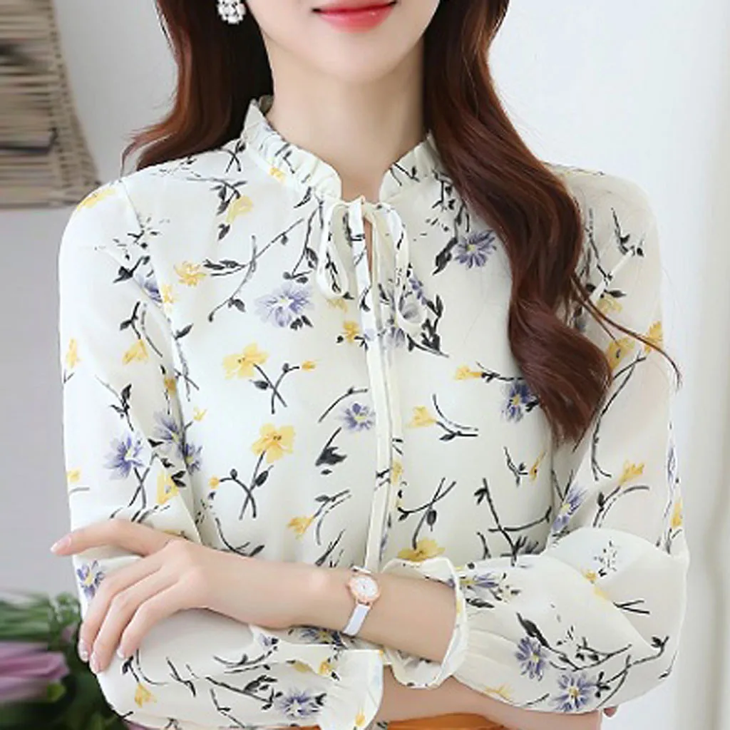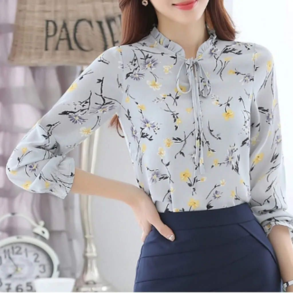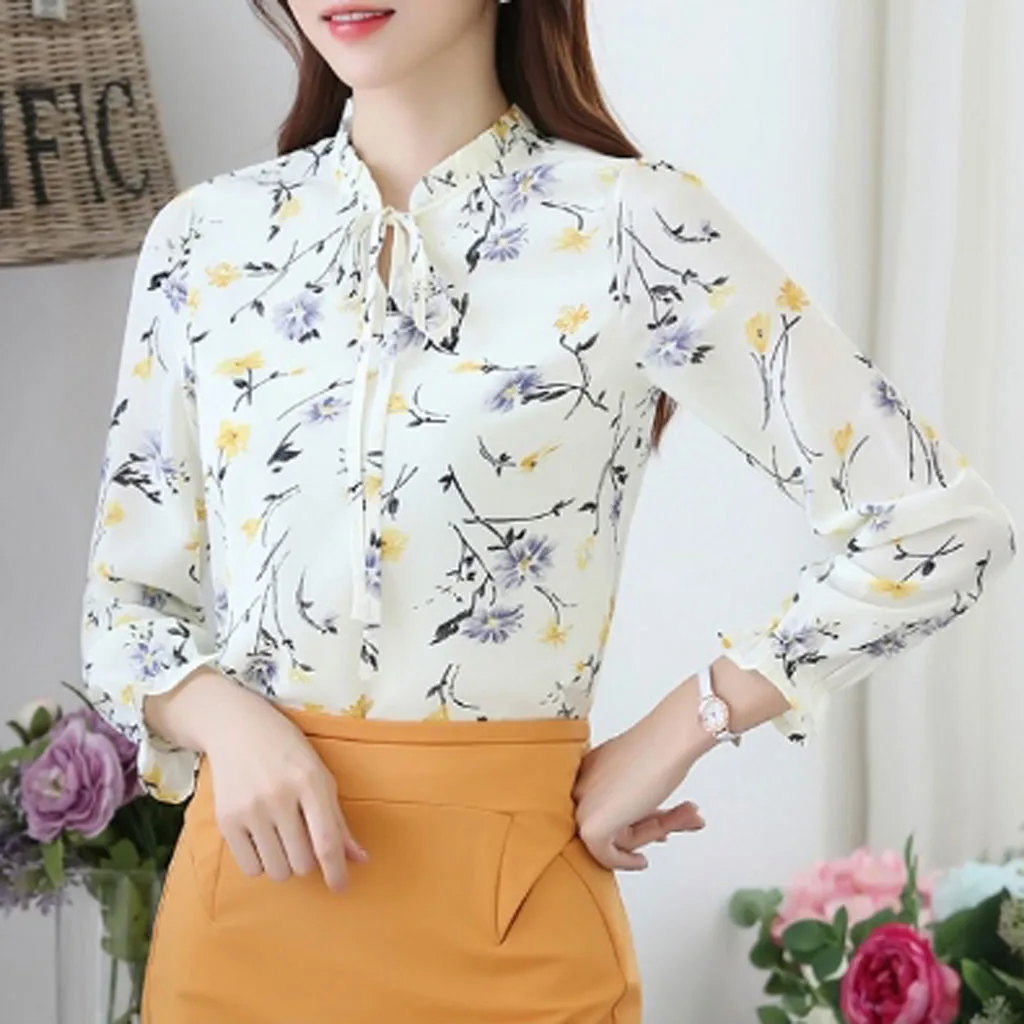 Отзывы о Fashion Chiffon Bow Tie Blouse Casual Summer Ladies Print Sexy V-Neck Tunic Tops Female Women Long Sleeve Shirt Blusas Pullover Женская