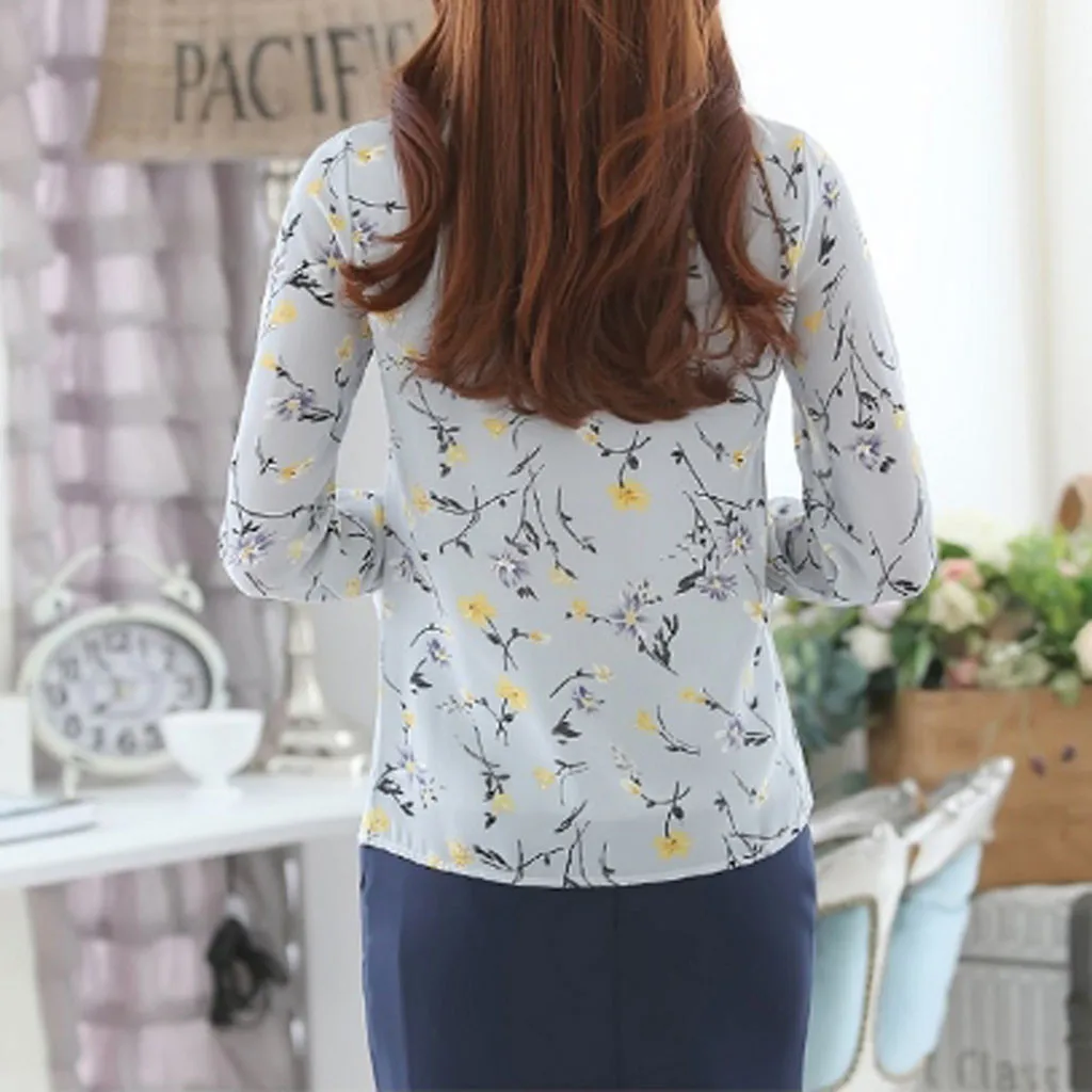 Fashion Chiffon Bow Tie Blouse Casual Summer Ladies Print Sexy V-Neck Tunic Tops Female Women Long Sleeve Shirt Blusas Pullover Женская - купить