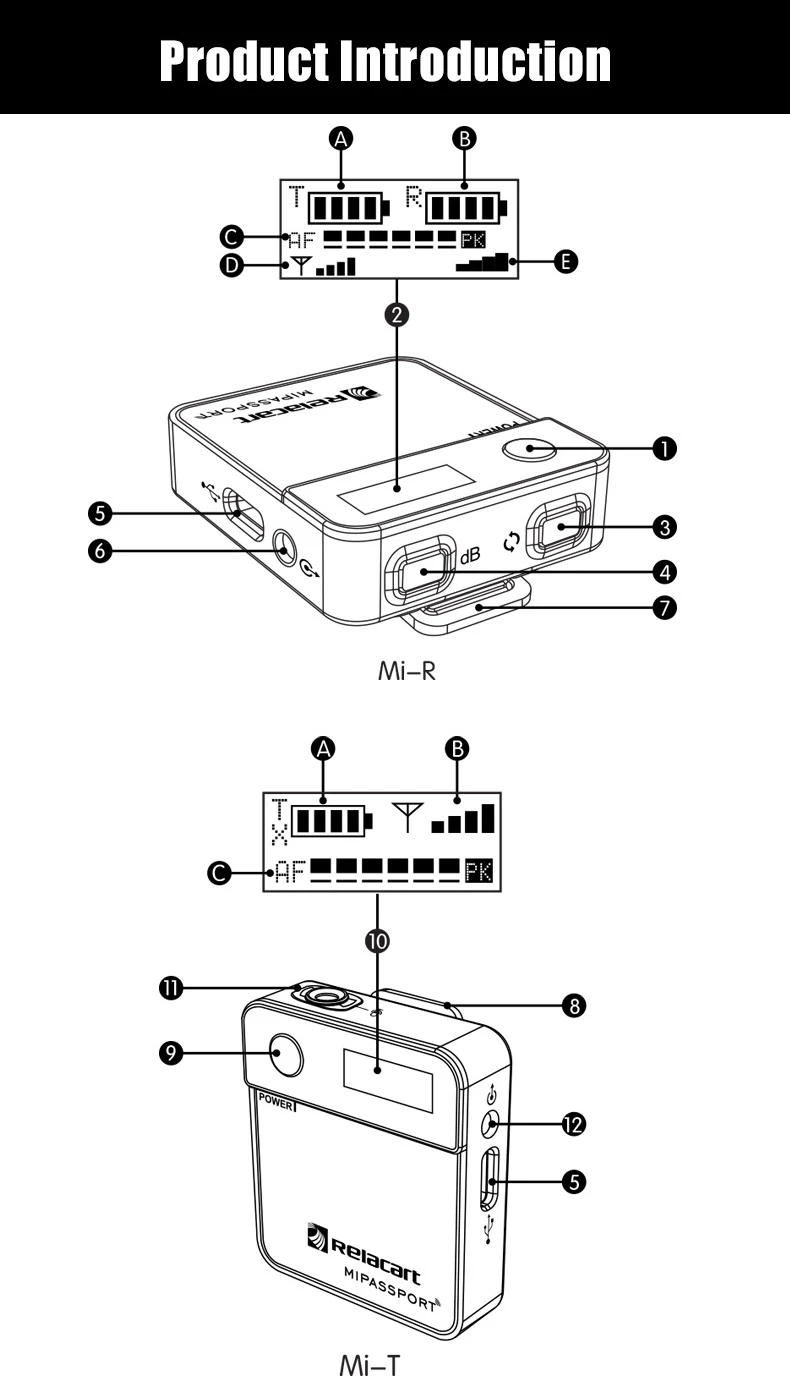 Relacart Mipassport-это миниатюрная полнофункциональная Беспроводная микрофонная система, разработанная и изготовленная компанией Relacart. Передатчик встроен в микрофон electrets, который можно закрепить непосредственно на воротнике, или он может быть подключен к микрофону lavalier с помощью внешнего входного интерфейса. Он используется в качестве сверхмаленького передатчика. Mipassport использует ISM global unlimited 2,4G Частотный диапазон для передачи. Приемник и передатчик автоматически соединены в течение 2 секунд после включения, и эффективное использование расстояние достигает 50 метров (открытые и широкие случаи). Как приемник, так и передатчик используют oled-дисплей для отображения текущей информации о продукте. Выходной объем регулируется. 3,5 мм TRS выход используется для подключения к цифровому/зеркальных фотокамер, видеокамер, магнитофоны, планшеты, мобильные телефоны и другие устройства, чтобы помочь в подобрав высокой точностью воспроизведения звука для интервью, микровидеозаписи или бизнес-презентаций.