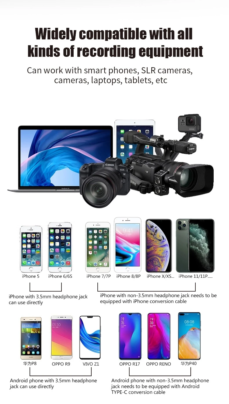 Встроенный Электрический микрофон l, также поддерживает внешний микрофон lavalier, выходной объем можно регулировать;