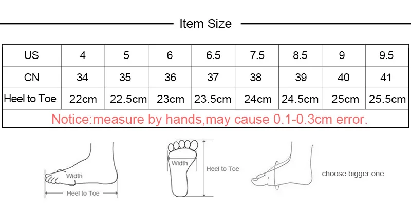 Пожалуйста, внимательно сверьтесь с таблицей размеров, чтобы выбрать размер в соответствии с длиной Вашей стопы, чтобы вы могли правильно выбрать Размер! Пожалуйста, выберите американский размер, спасибо! Если вы не уверены, какой размер вам подходит, пожалуйста, свяжитесь с нами!