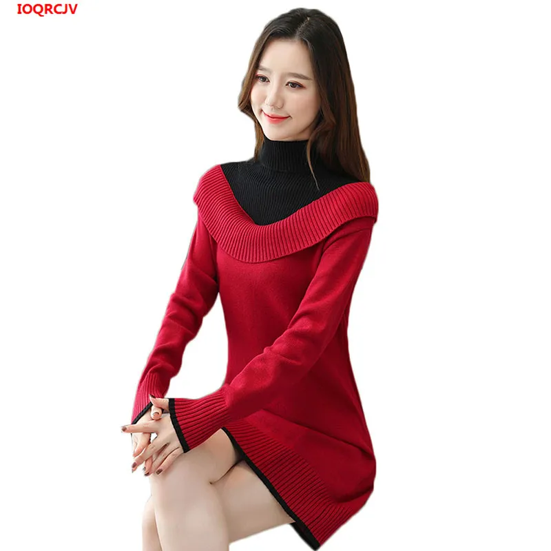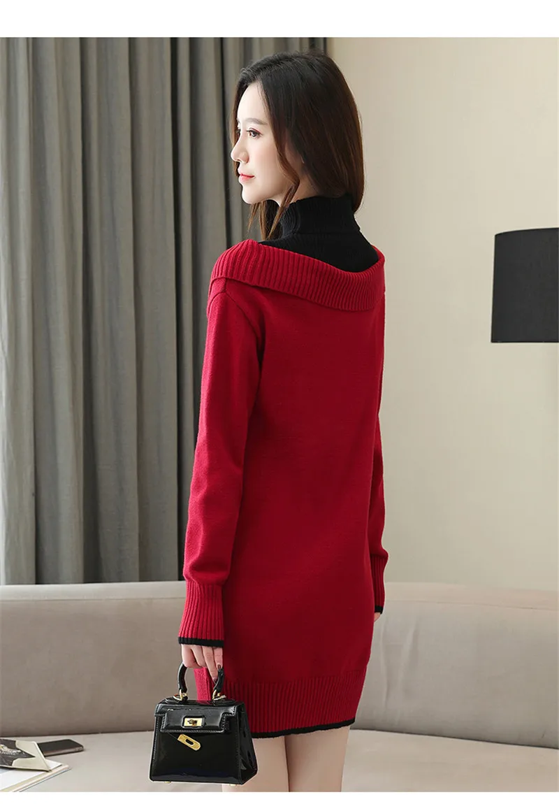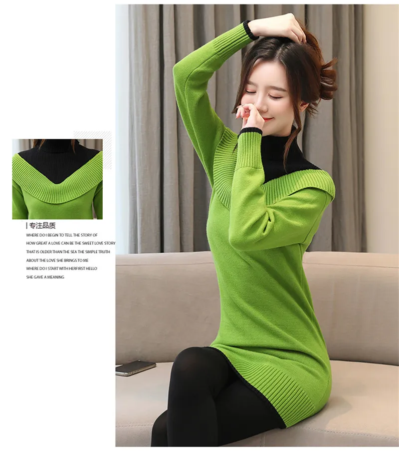 Женский свитер платье модный тонкий пуловер с высоким воротом Осень-зима плюс - купить