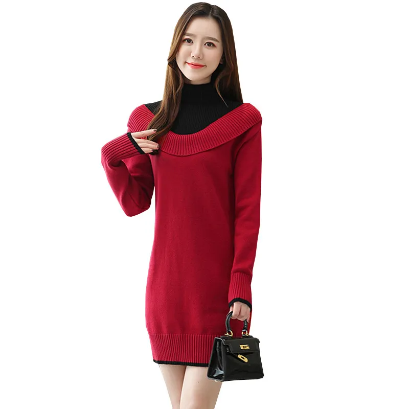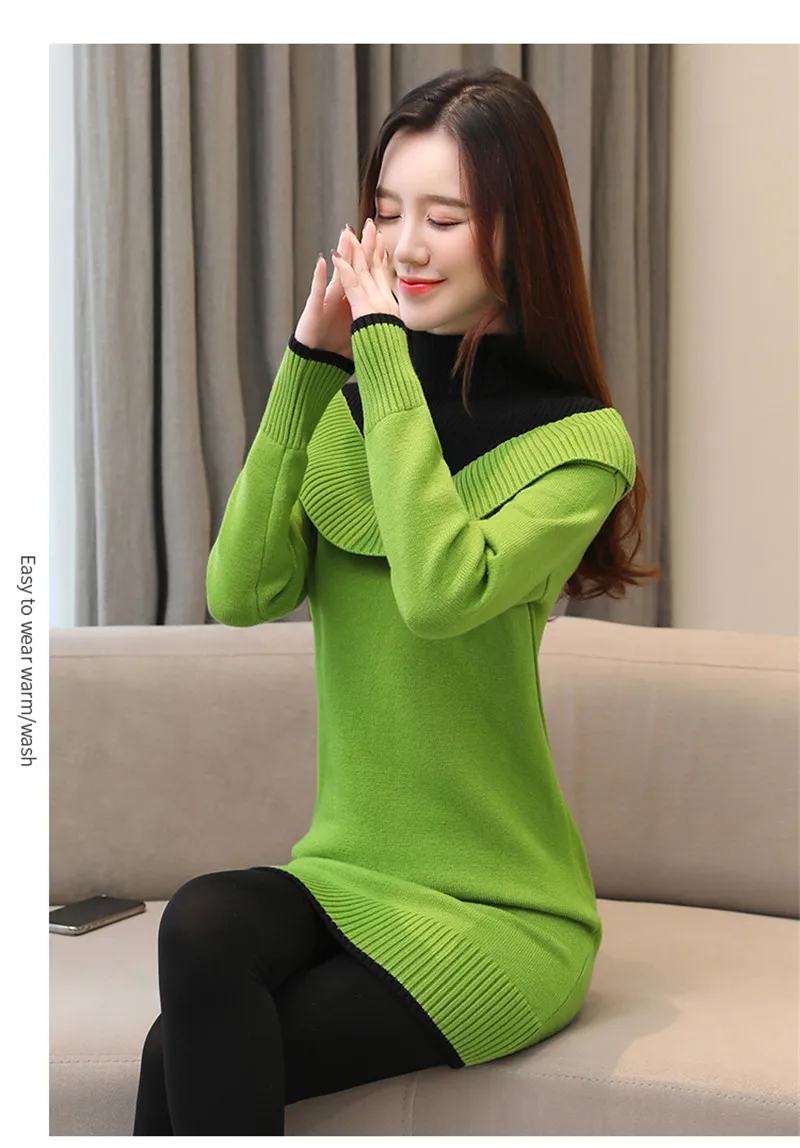 Отзывы о Женский свитер платье модный тонкий пуловер с высоким воротом Осень-зима плюс